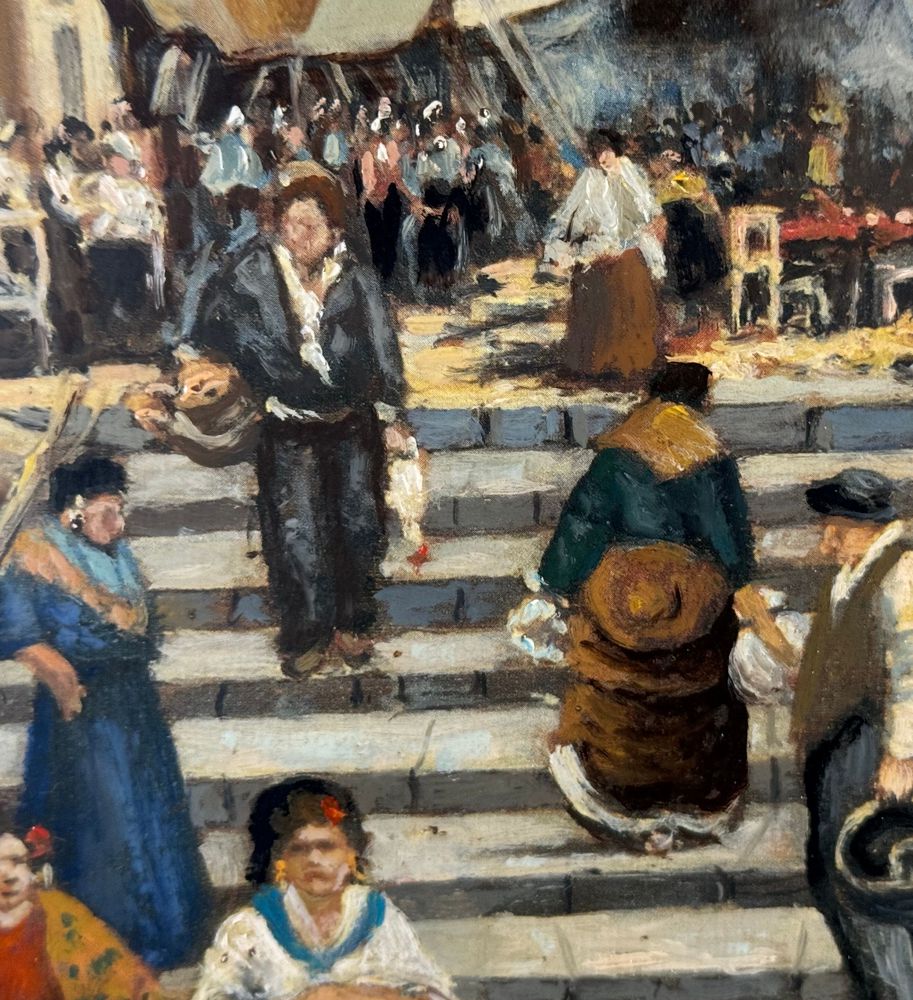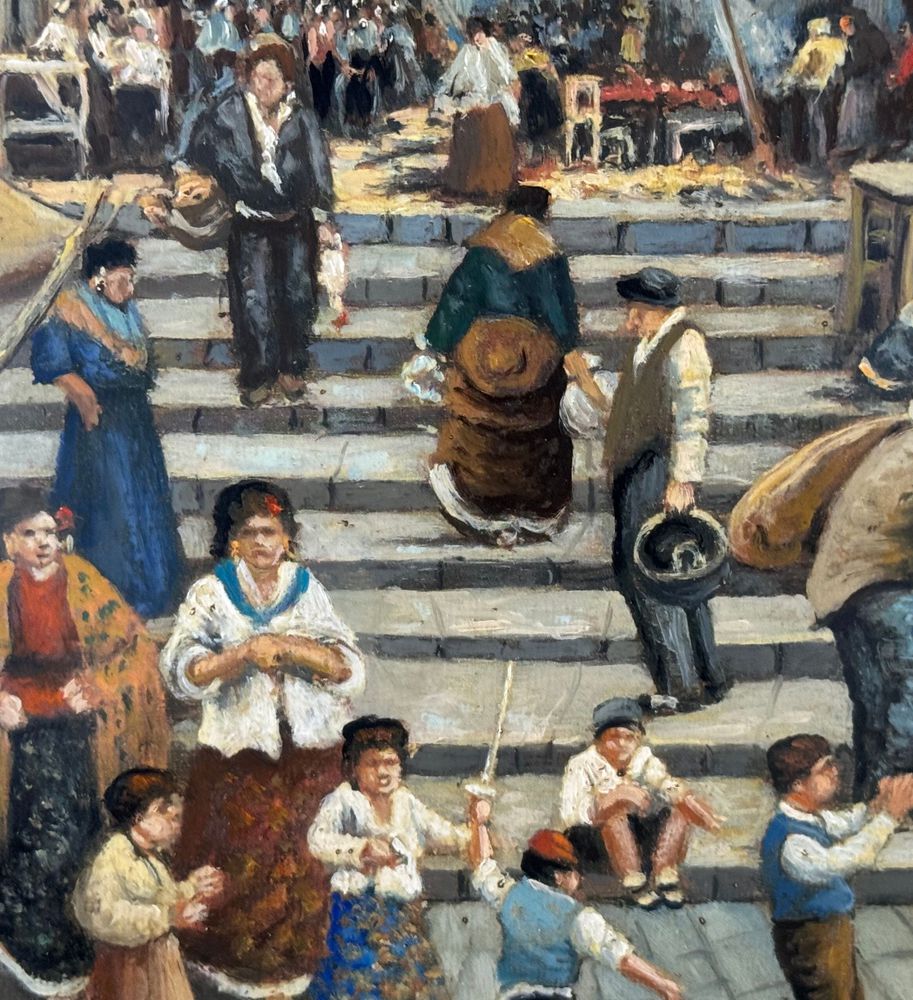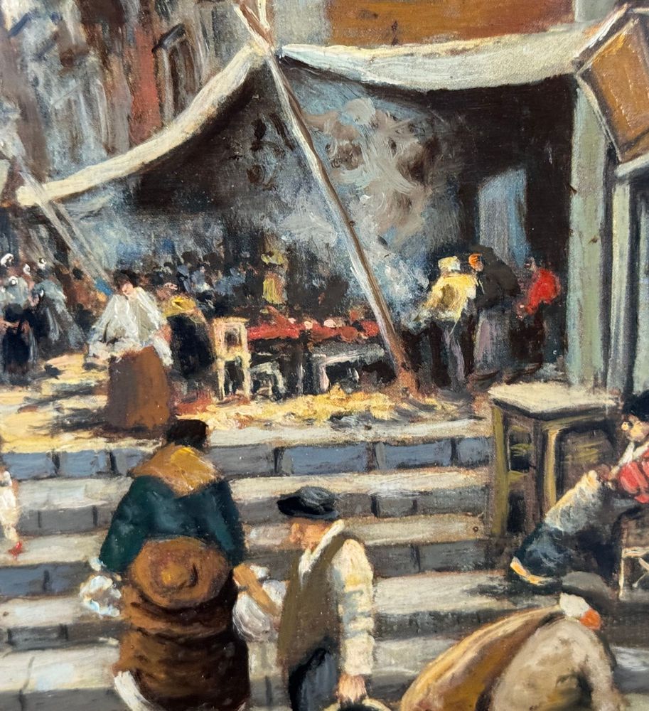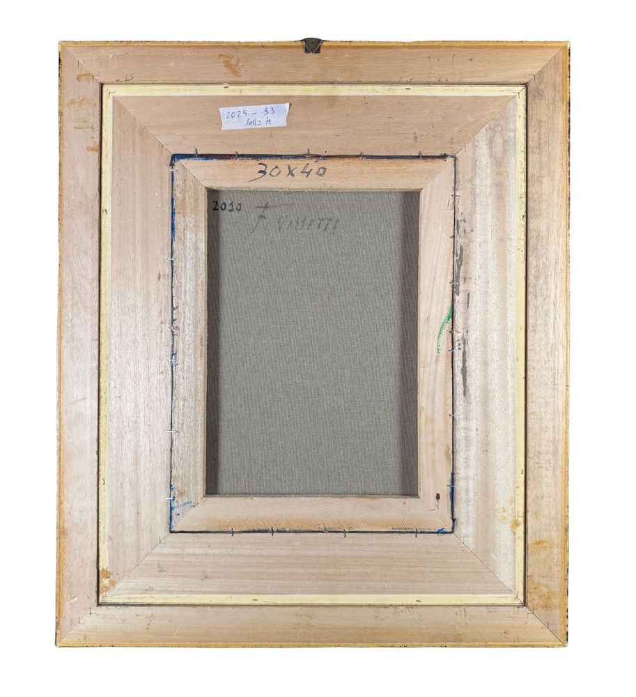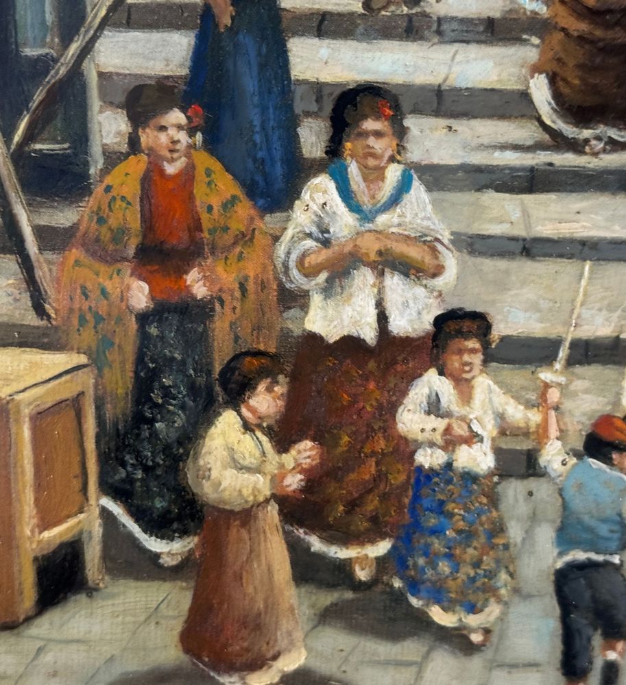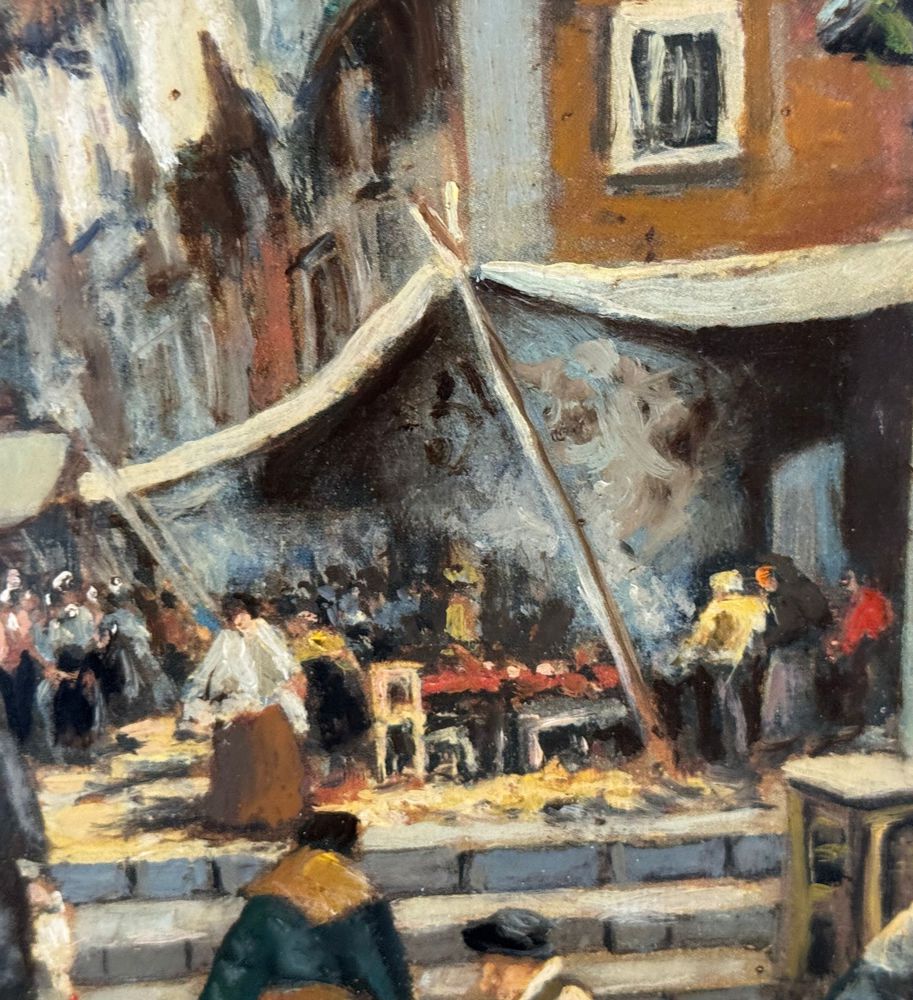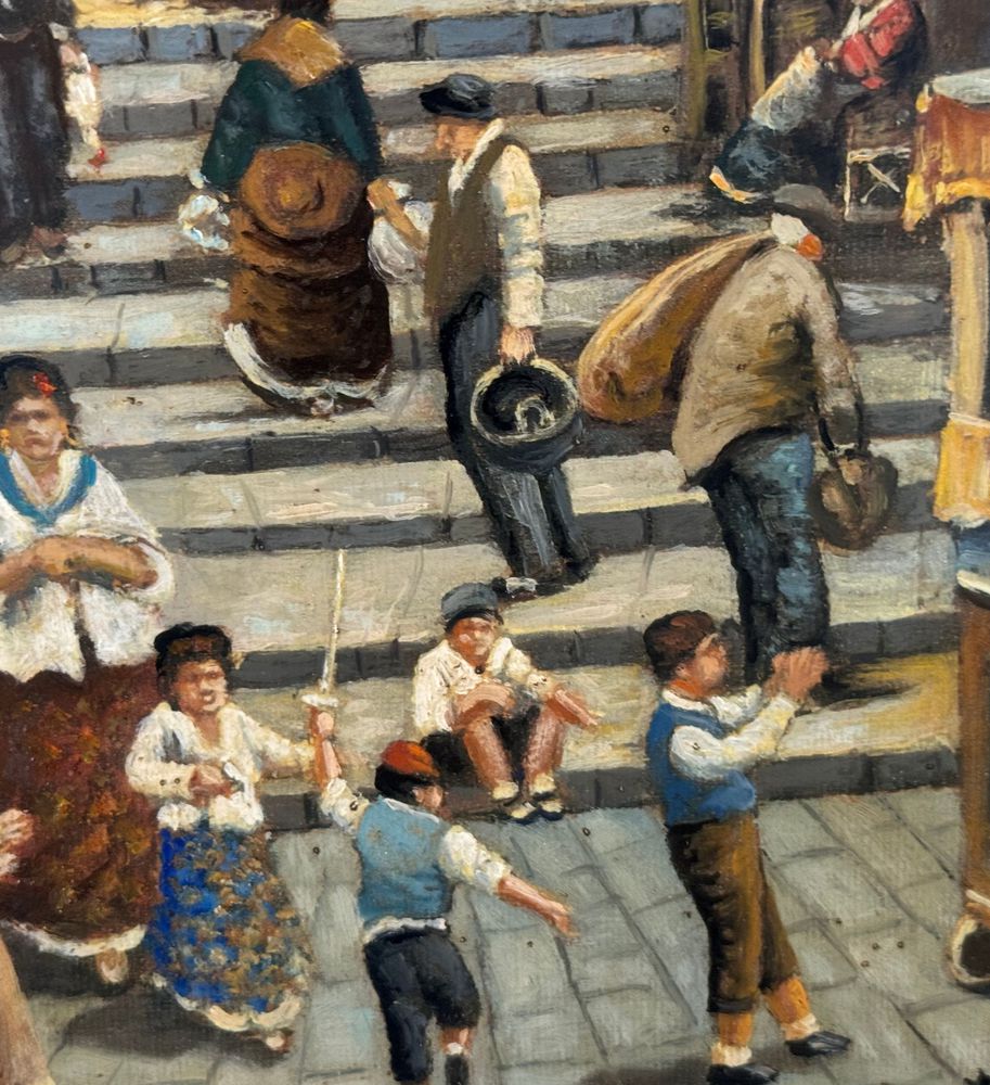 Dipinto olio su tela, periodo XX secolo, scuola Italiana, raffigurante Stradina napoletana con personaggi. Dimensioni compreso cornice: 55x65 cm. Dimensioni interno cornice: 30x40 cm. Firmato in basso a destra Vassetti. Opera in buone condizioni.