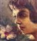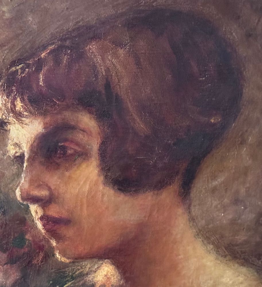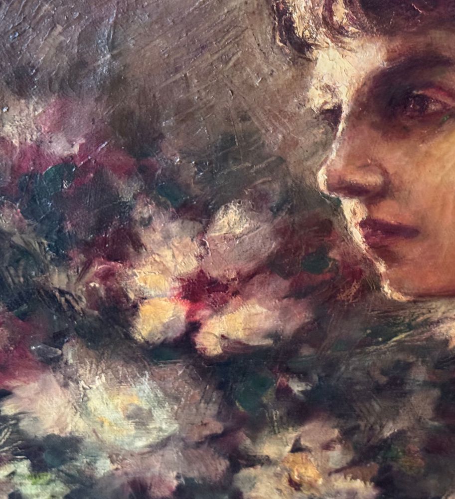 Dipinto olio su tela, periodo XX secolo, scuola Italiana, raffigurante Ritratto di donna con fiori. Dimensioni compreso cornice: 57x63 cm. Dimensioni interno cornice: 41x48 cm. Firmato in basso a destra Giuseppe Ferrari. Opera in buone condizioni con lievi segni di vissuto come da foto allegate.
