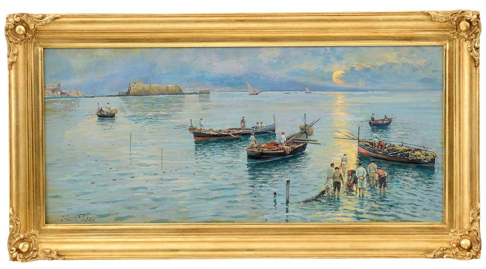 PRATELLA FAUSTO Napoli 10/10/1888 - Napoli 1946Marina con pescatoriolio su...