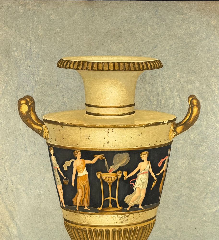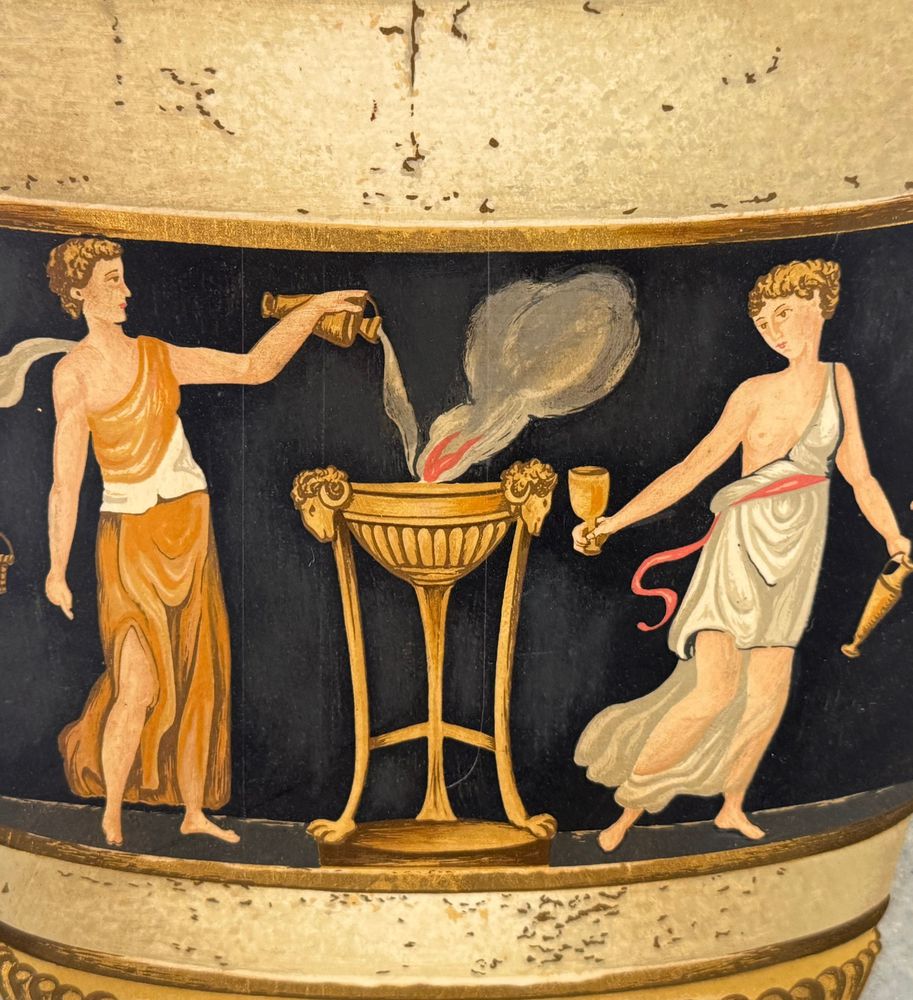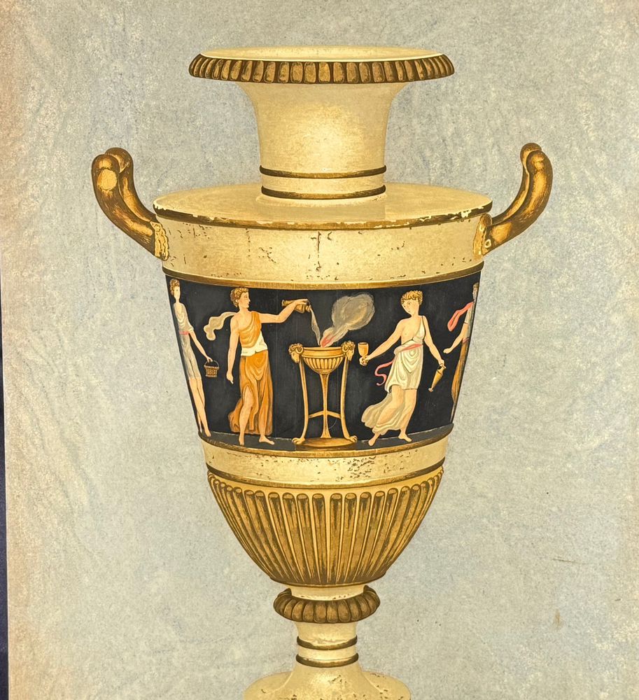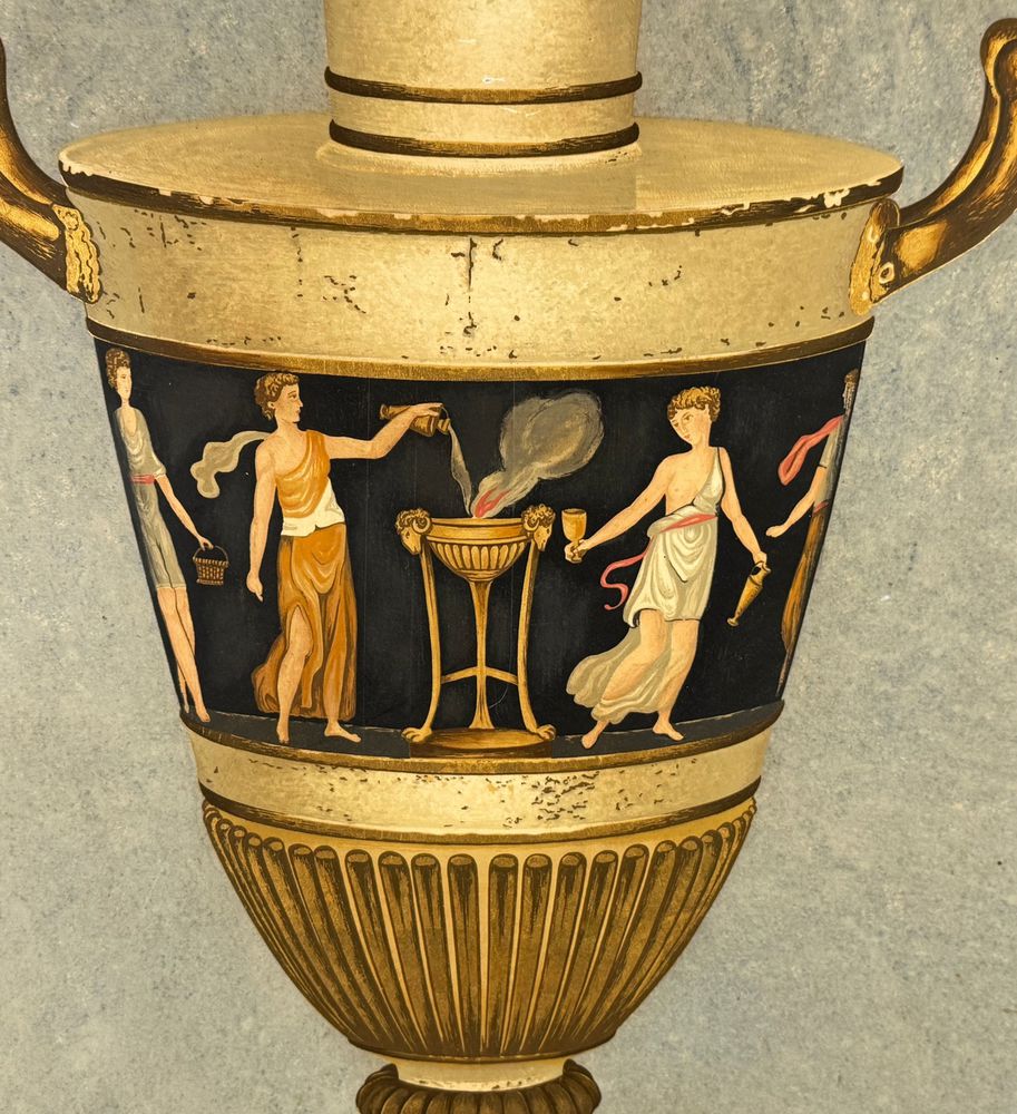 Pannello decorativo, periodo XX secolo, scuola Italiana, raffigurante Vaso con scena Pompeiana. Dimensioni: 64x44 cm. Firmato in basso a destra R. Simonetto. Opera in buone condizioni.