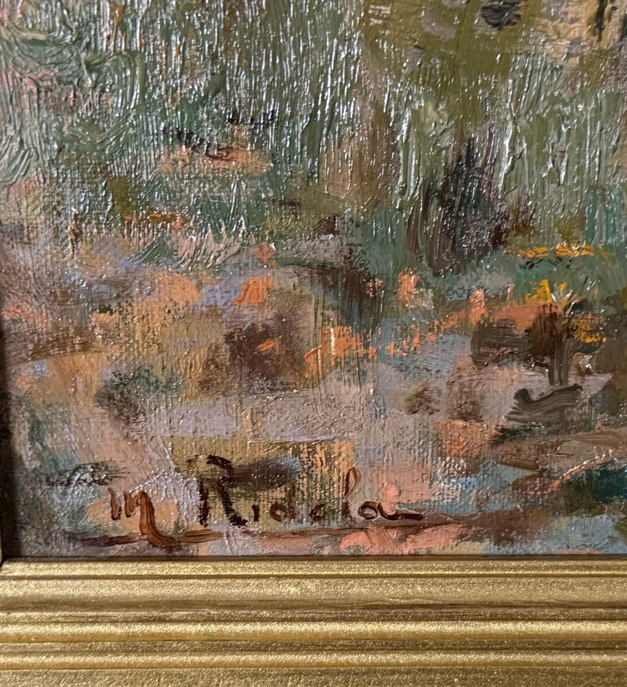 Dipinto olio su tela, periodo XX secolo, scuola Italiana, raffigurante Paesaggio. Dimensioni compreso cornice: 67x58 cm. Dimensioni interno cornice: 55x46 cm. Firmato in basso a sinistra Mario Ridola (1890) . Opera in buone condizioni e di eccellente qualità artistica.