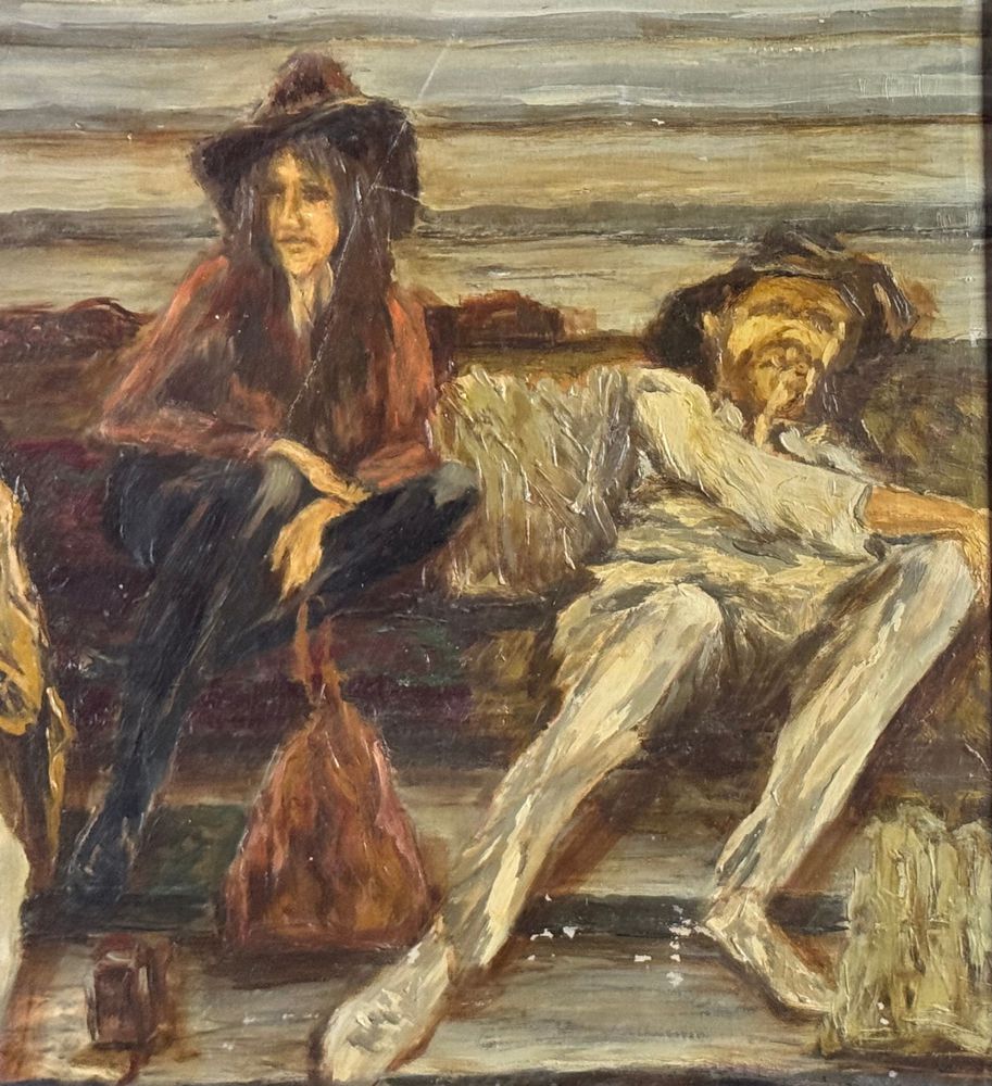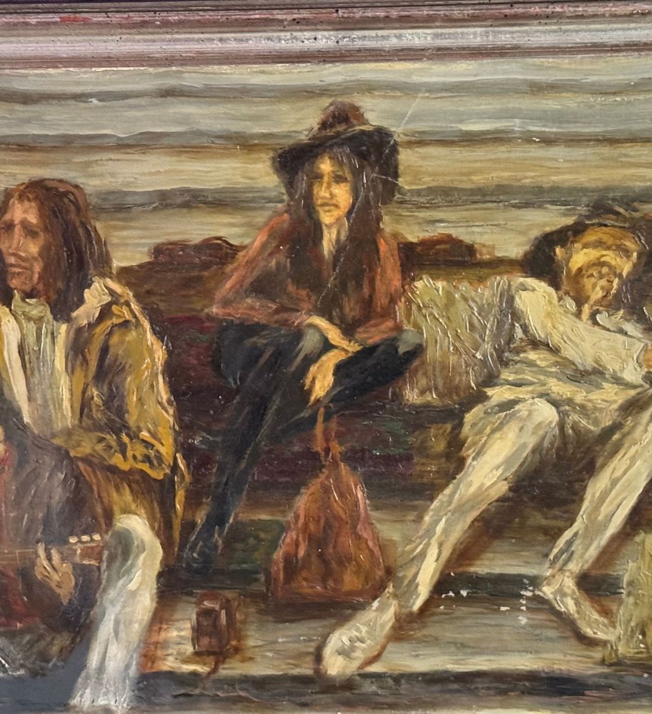 Dipinto olio su tela, periodo XX secolo, raffigurante Artisti di strada. Dimensioni compreso cornice: 56x46 cm. Dimensioni interno cornice: 50x40 cm. Da artista anonimo. Opera in buone condizioni con lievi segni di vissuto come da foto allegate.