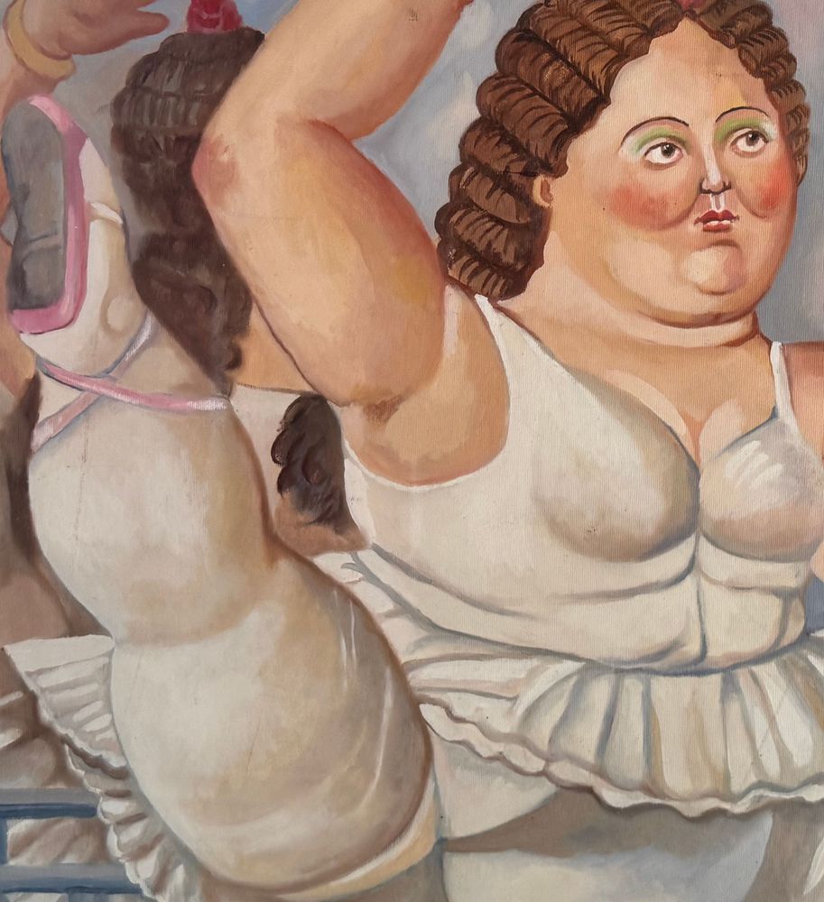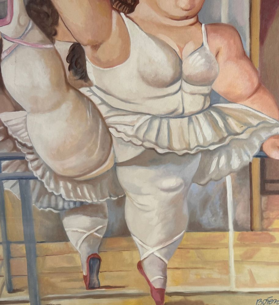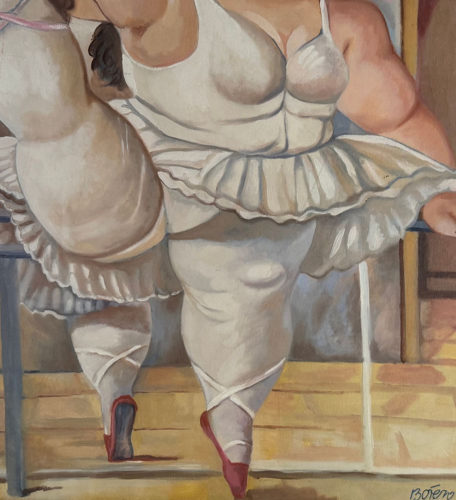 Dipinto olio su tela, omaggio a Botero scuola Italiana, periodo XX secolo, raffigurante Donna danzante. Dimensioni compreso cornice: 89x109 cm. Dimensioni interno cornice: 60x80 cm. Da artista anonimo. Opera in buone condizioni.