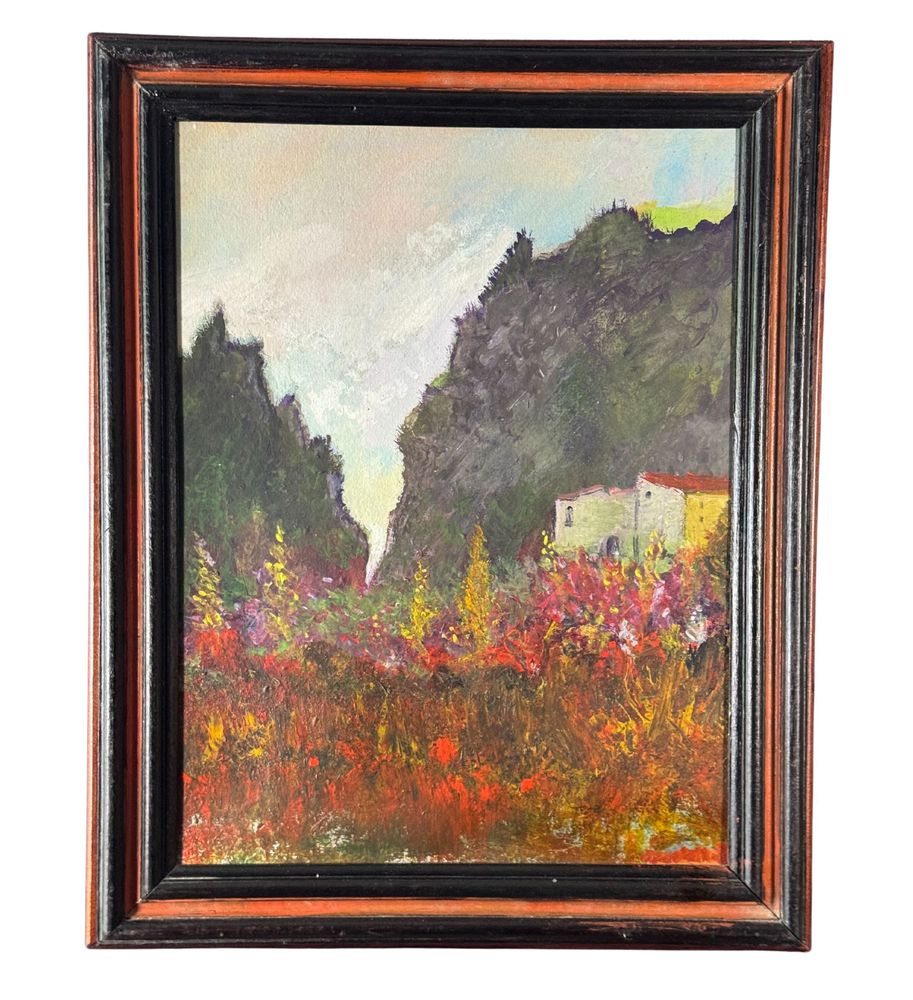 Dipinto olio su pannello, scuola Italiana, periodo XX secolo, raffigurante Paesaggio. Dimensioni compreso cornice: 49x62 cm. Dimensioni interno cornice: 39x51 cm. Da artista anonimo. Opera in buone condizioni.