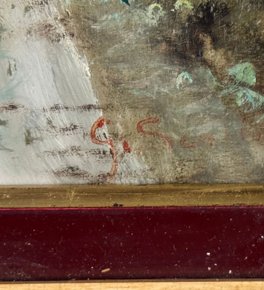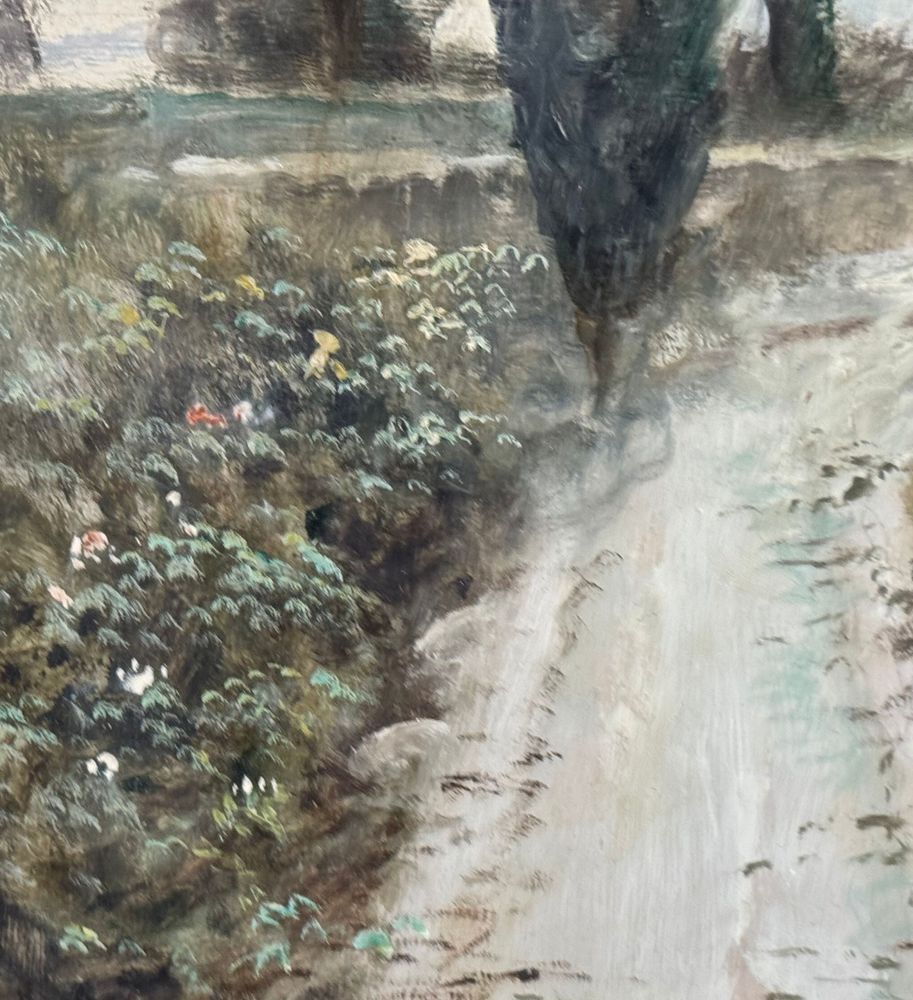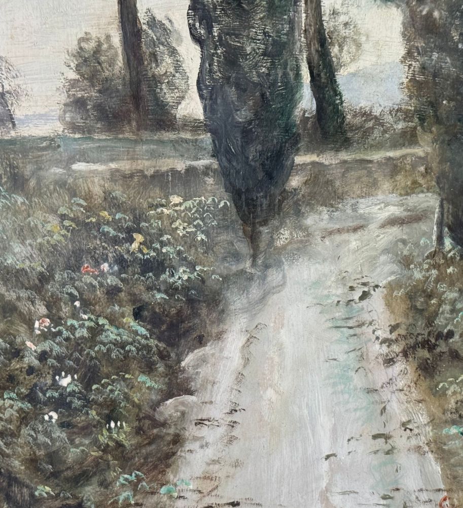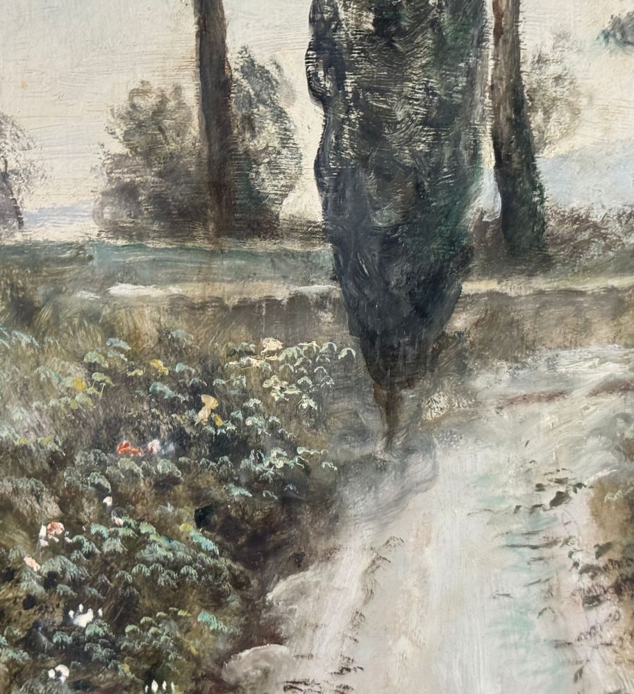 Dipinto olio su tavola, periodo XX secolo, scuola Italiana, raffigurante Paesaggio alberato. Dimensioni compreso cornice: 35x49 cm. Dimensioni interno cornice: 25x40 cm. Firmato in basso a destra di difficle lettura. Opera in buone condizioni.