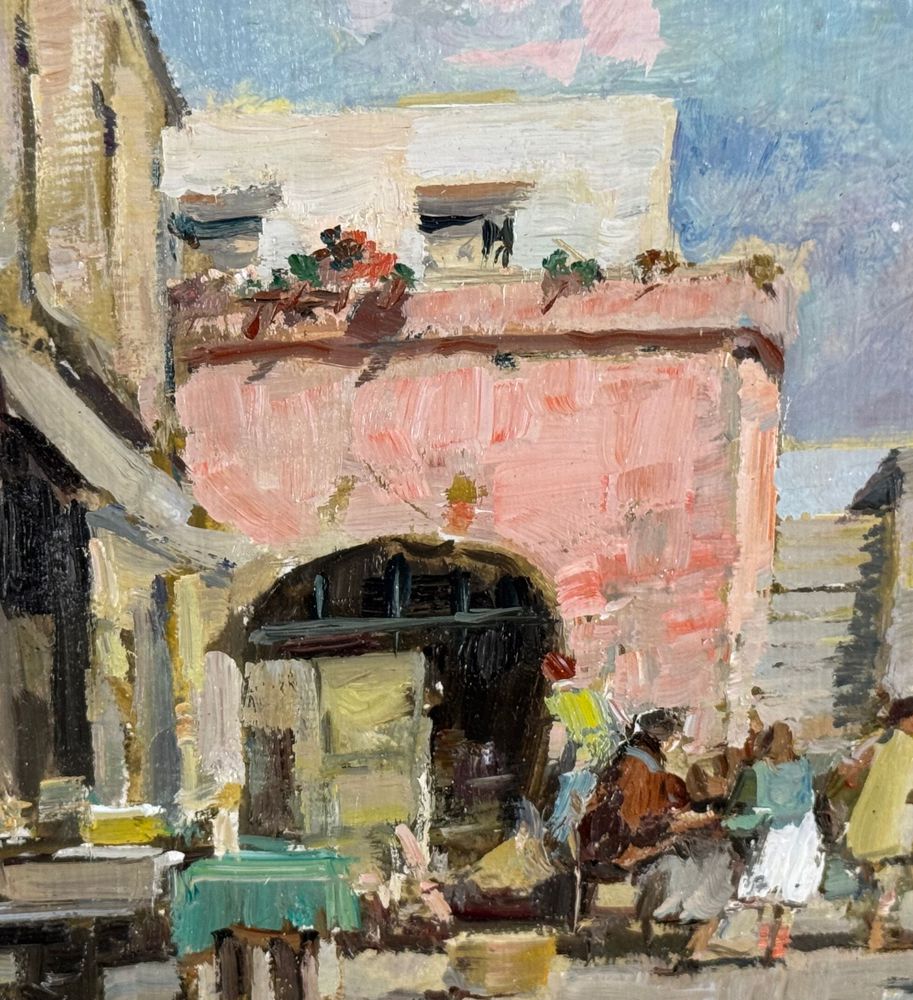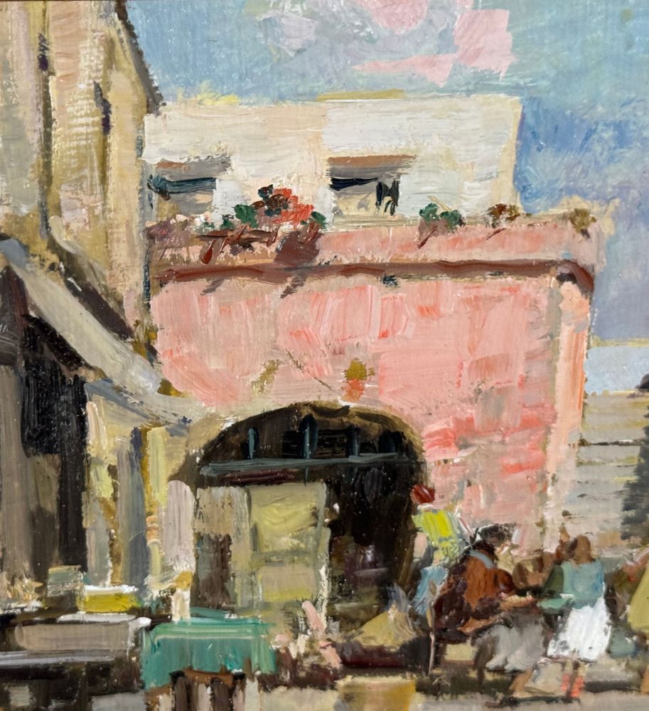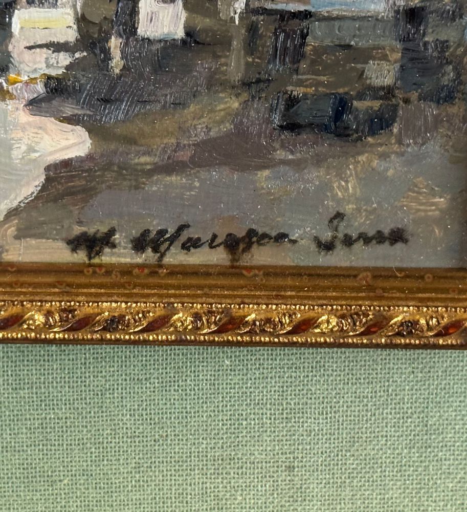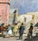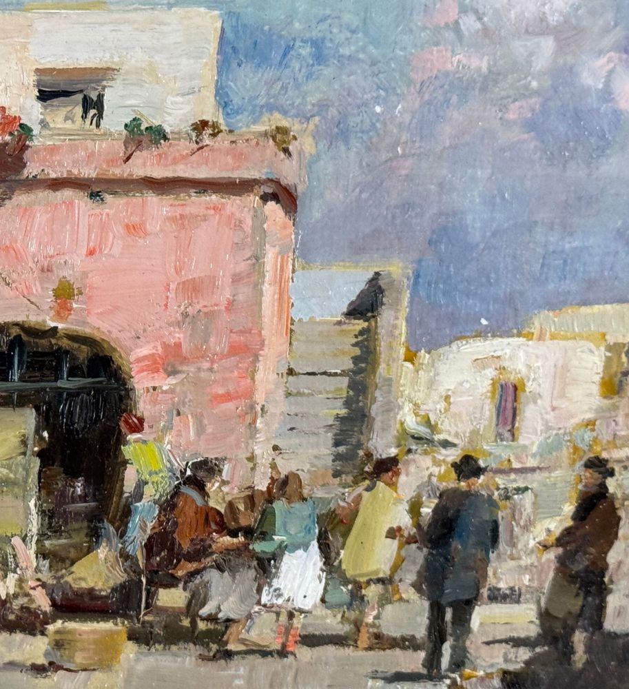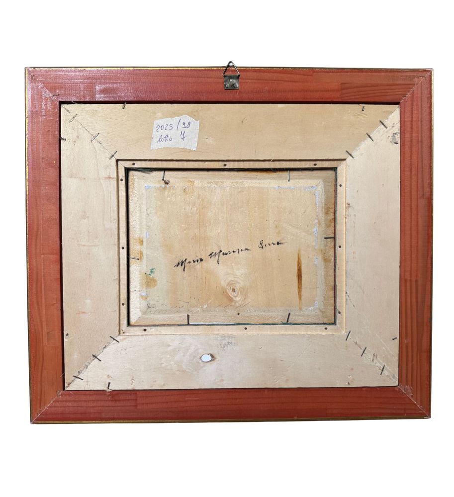 Dipinto olio su tavola, periodo XX secolo, scuola Italiana, raffigurante Mercatino con personaggi. Dimensioni compreso cornice: 46x40 cm. Dimensioni interno cornice: 18x24 cm. Firmato in basso a destra Mario Maresca Serra. Opera in buone condizioni.