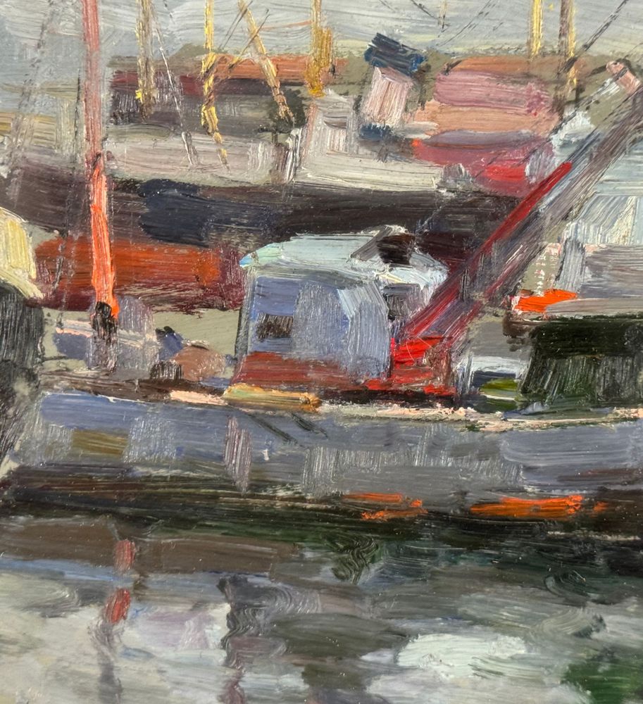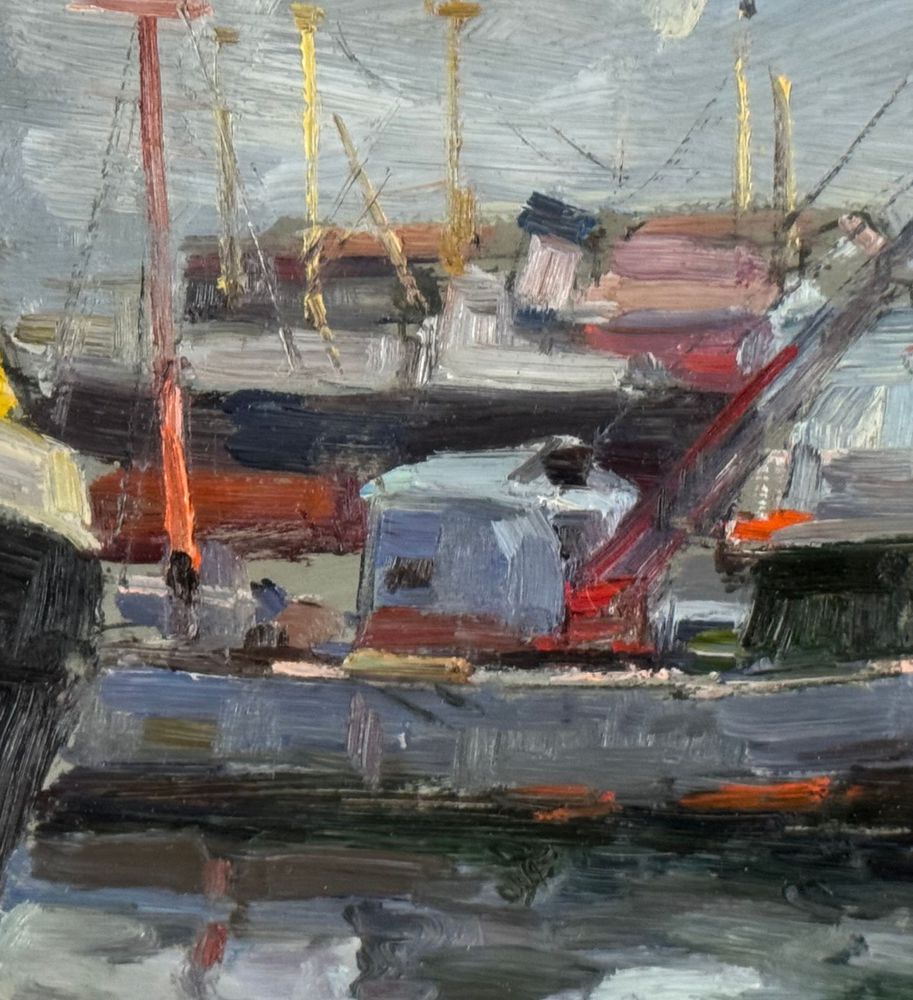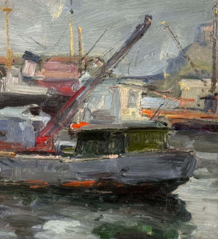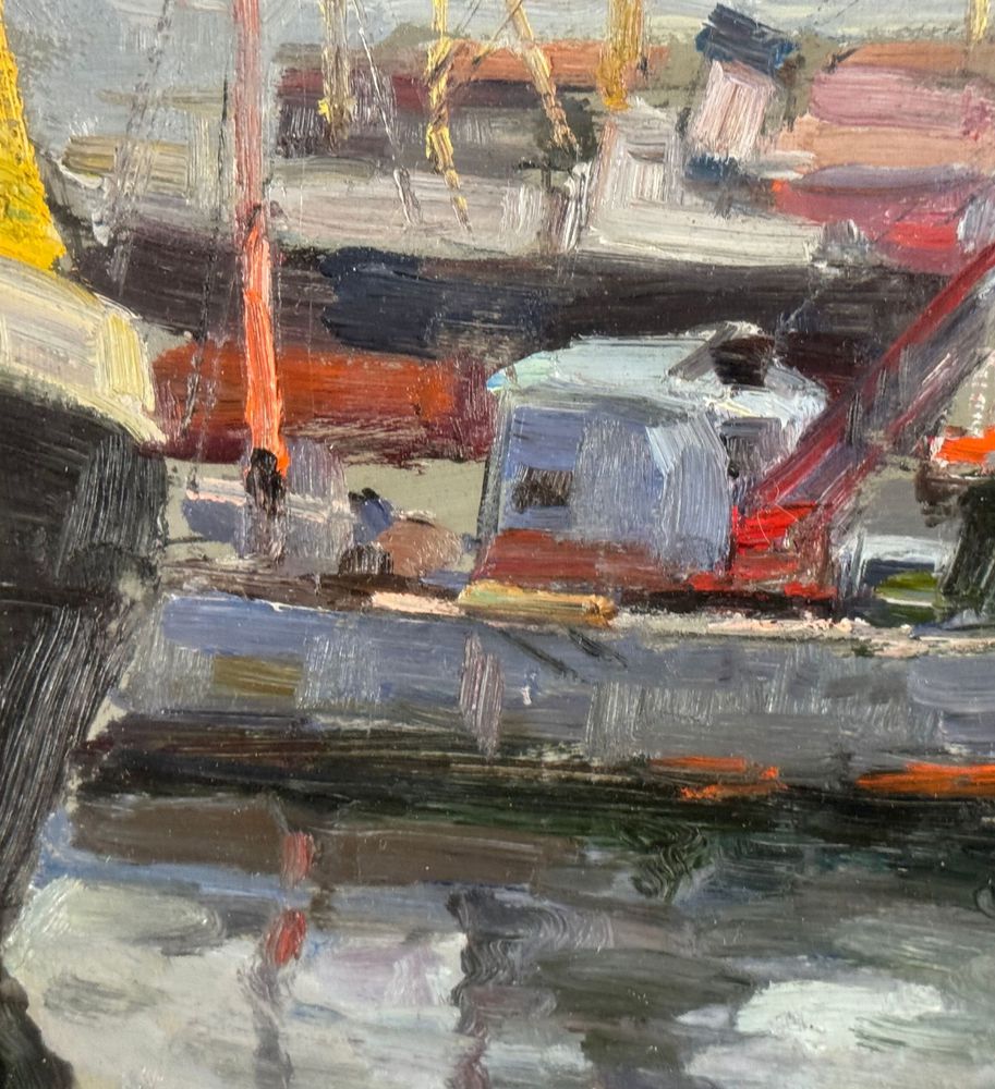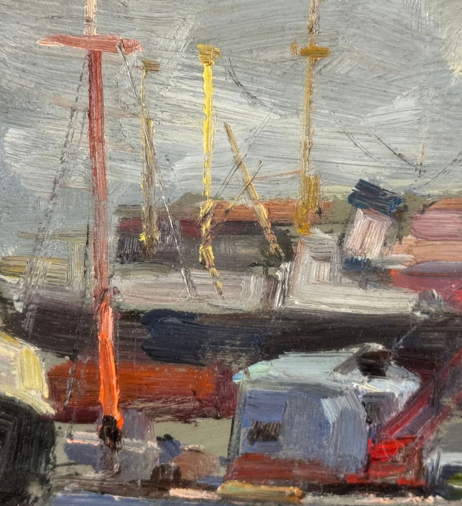 Dipinto olio su tavola, periodo XX secolo, scuola Italiana, raffigurante Porto con barche. Dimensioni compreso cornice: 55x49 cm. Dimensioni interno cornice: 24x30 cm. Firmato in basso a sinistra Biagio Mercadante (12 maggio 1892, Torraca