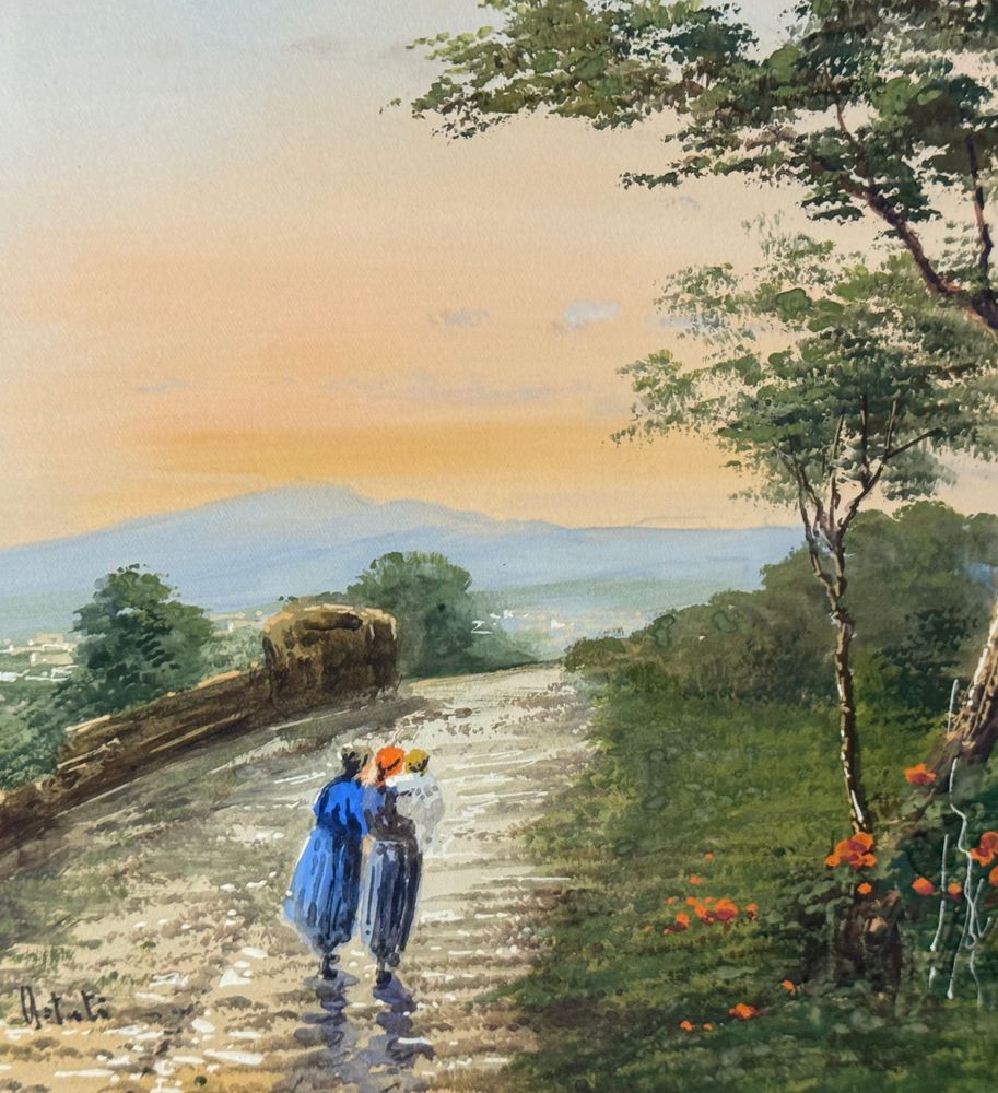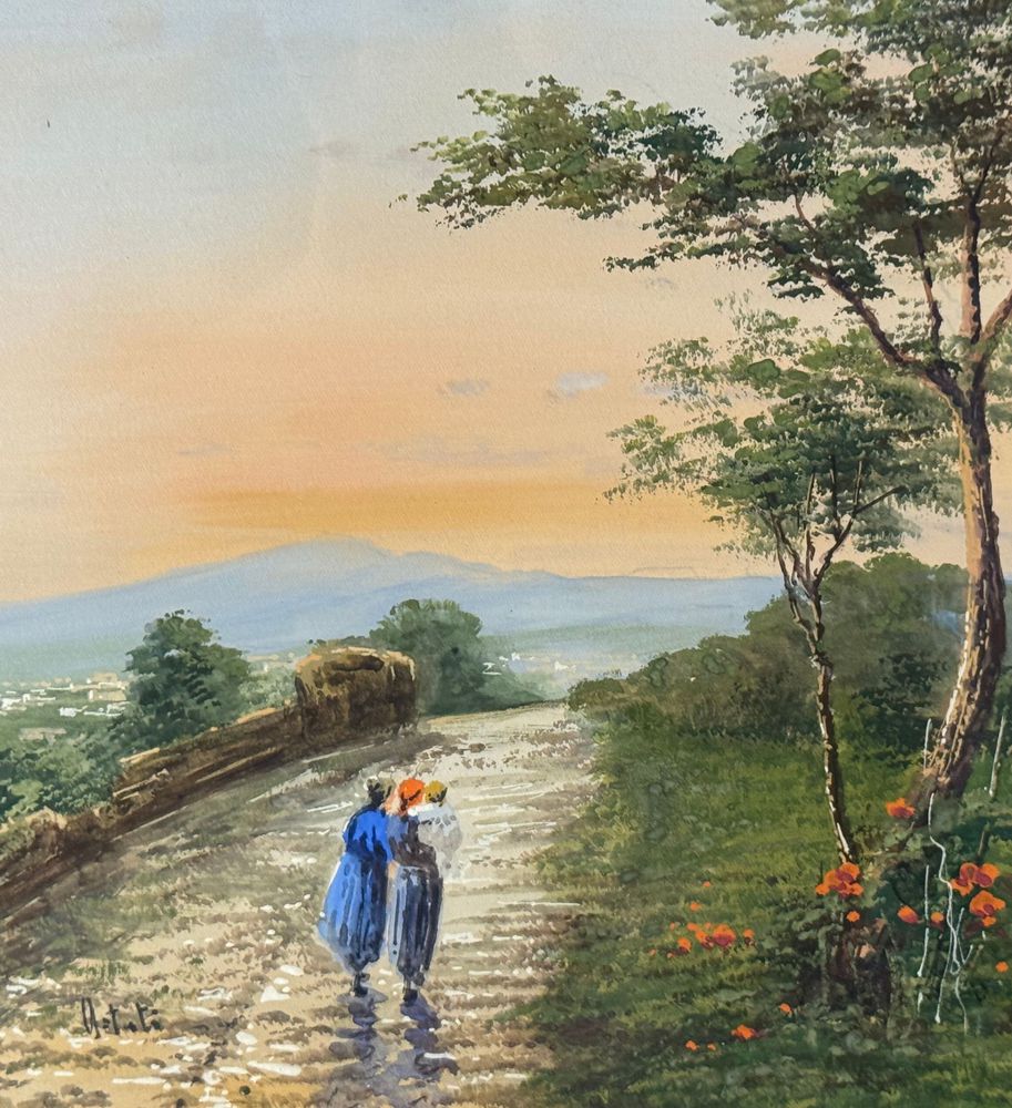 Dipinto acquerello su carta, periodo XX secolo, scuola Italiana, raffigurante Collina con veduta. Dimensioni compreso cornice: 47x38 cm. Dimensioni interno cornice: 34x24 cm. Firmato in basso a sinistra artista non identificato. Opera in buone condizioni , di eccellente qualità artistica. Finemente incorniciato.