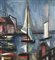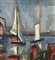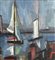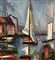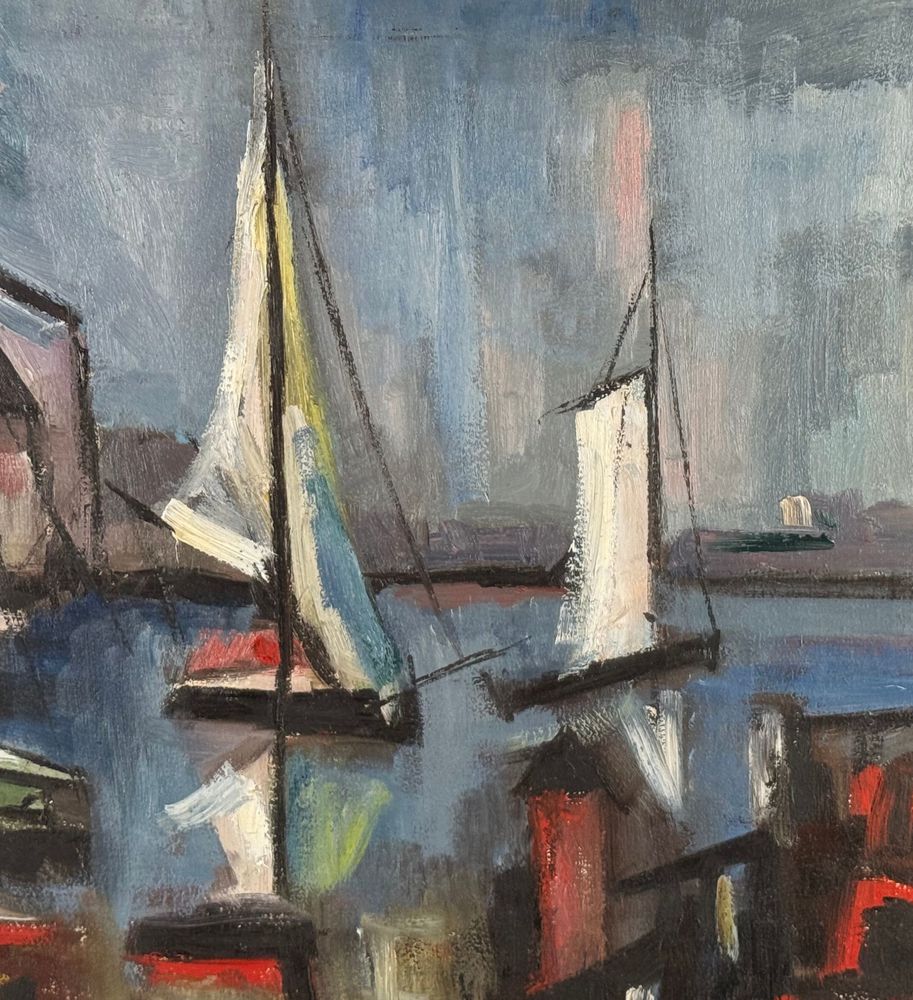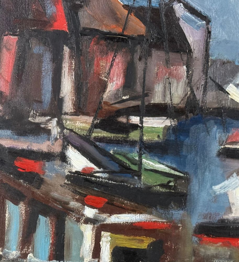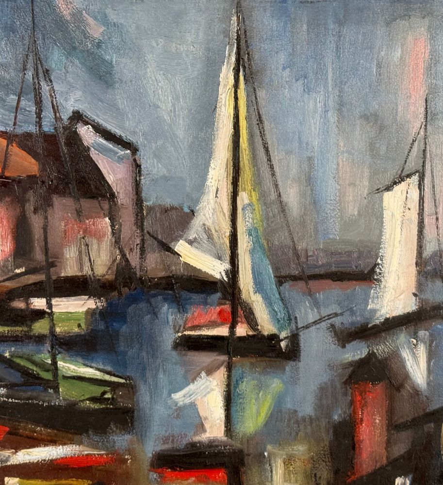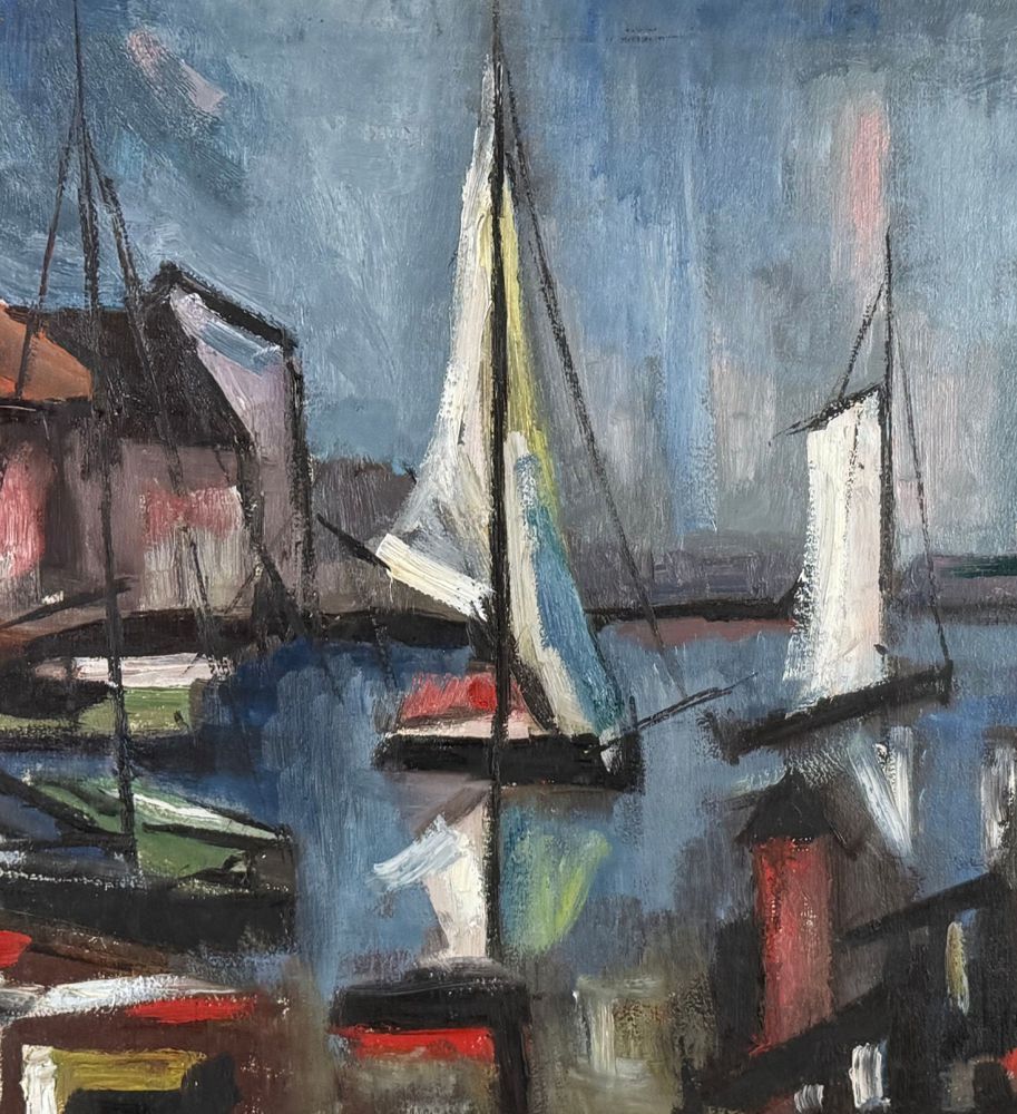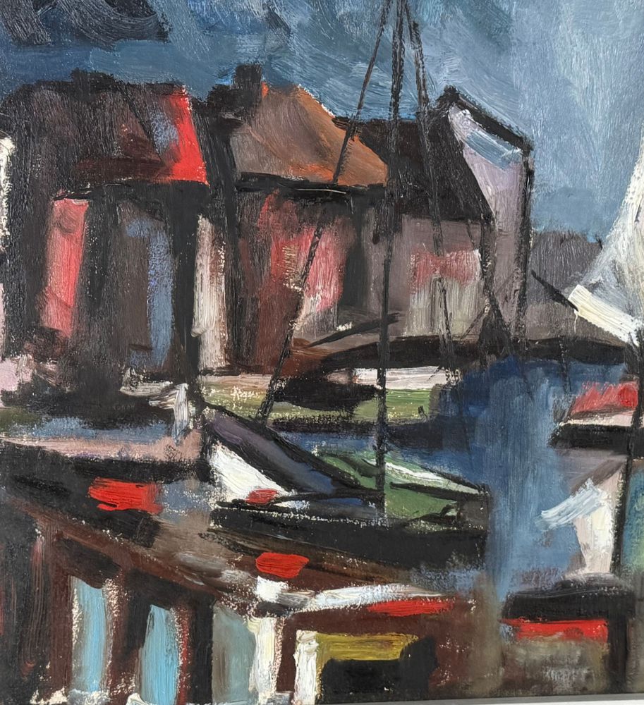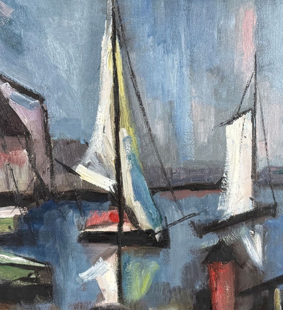 Dipinto olio su tela, scuola Italiana, periodo XX secolo, raffigurante Marina con barche. Dimensioni compreso cornice: 67x87 cm. Dimensioni interno cornice: 50x70 cm. Firma in basso a destra artista non identificato. Opera in buone condizioni.