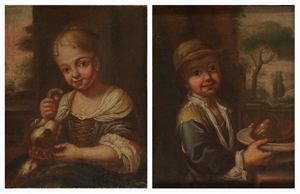 PITTORE ANONIMO DEL XVIII SECOLO SEGUACE DI ANTONIO AMOROSI Coppia di...