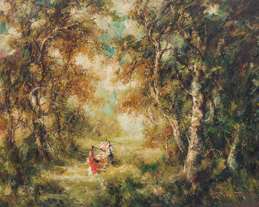 POBBIATI MARIO Milano 1887 - 1956Ragazze nel parcoolio su masonite cm. 75x95,...
