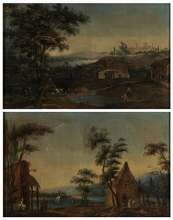 PITTORE ANONIMO DEL XVIII SECOLO Coppia di paesaggi Olii su tela, 80x125 cm...