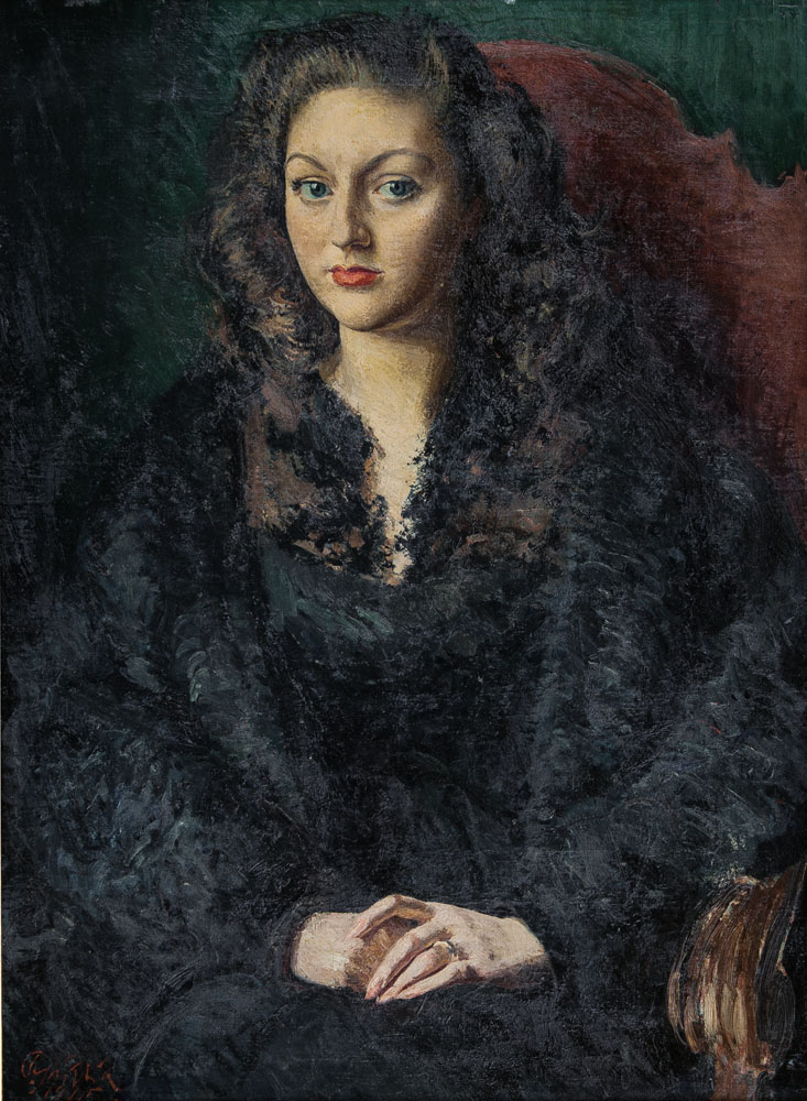 GHIGLIA PAULO Firenze 1905 - Roma 1979Ragazza in poltrona, 1945olio su tela...