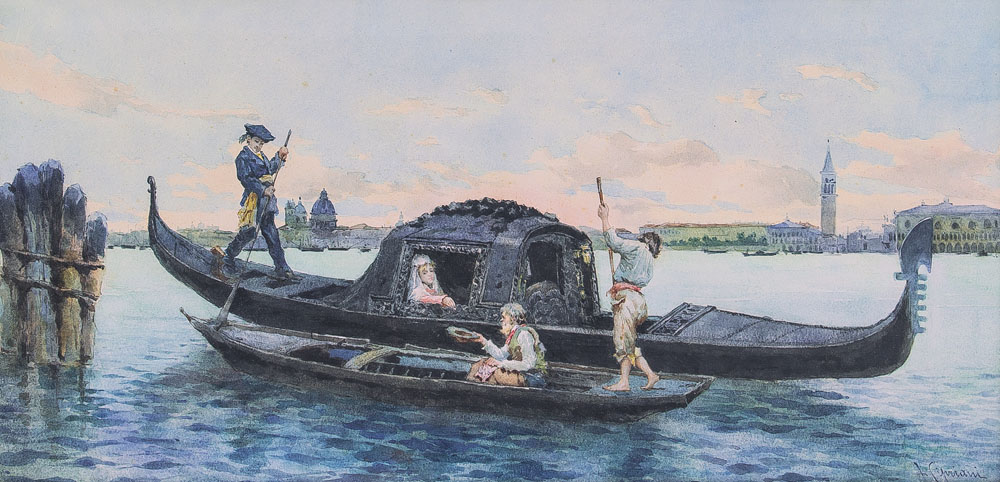 Lotto 232 | CIPRIANI ADOLFO Attivo tra il 1895-1930Venezia, Gondolieriacquerello su carta...