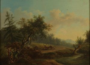 PITTORE ANONIMO DEL XVIII SECOLO Coppia di paesaggi Olio su tela, 52x72 cm ciascuno