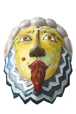 Luigi Ontani "Roma - rima" 1995 acquerello su fotografia sagomata cm 33x25 Titol