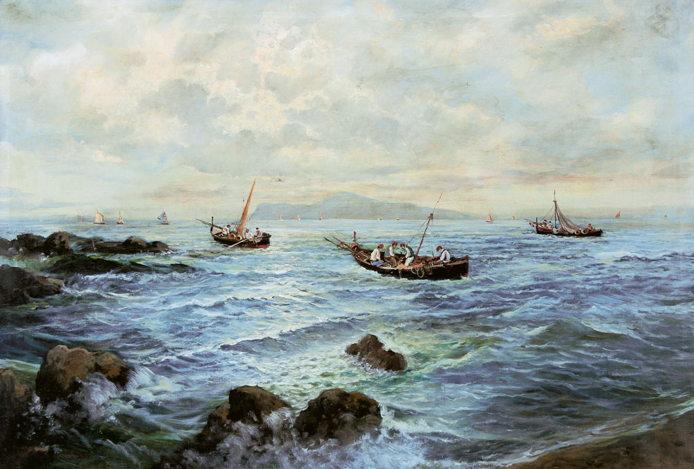 PRATELLA FAUSTO Napoli 10/10/1888 - Napoli 1946Marina con pescatoriolio su...