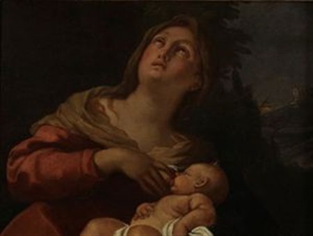 PITTORE ANONIMO DEL XVII SECOLO Madonna con Bambino Olio su tela 47x62 cm