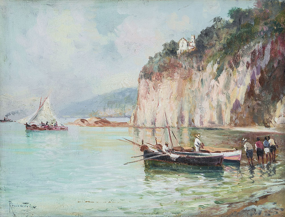 RICCIARDI OSCAR Napoli 24/02/1864 - 1935Marinaolio su tavola cm. 18x24, firma...