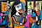 Certificato di autenticitàQuest'opera d'arte è un'elettrizzante fusione di influenze astratte e cubiste, che offre un'esperienza visiva sorprendente. Una figura centrale, forse una donna, cattura l'attenzione con un volto intricatamente frammentato, fondendo precisione geometrica ed espressione emotiva. Le linee audaci e i colori contrastanti definiscono questa figura, dividendo il viso in due tonalità complementari di blu