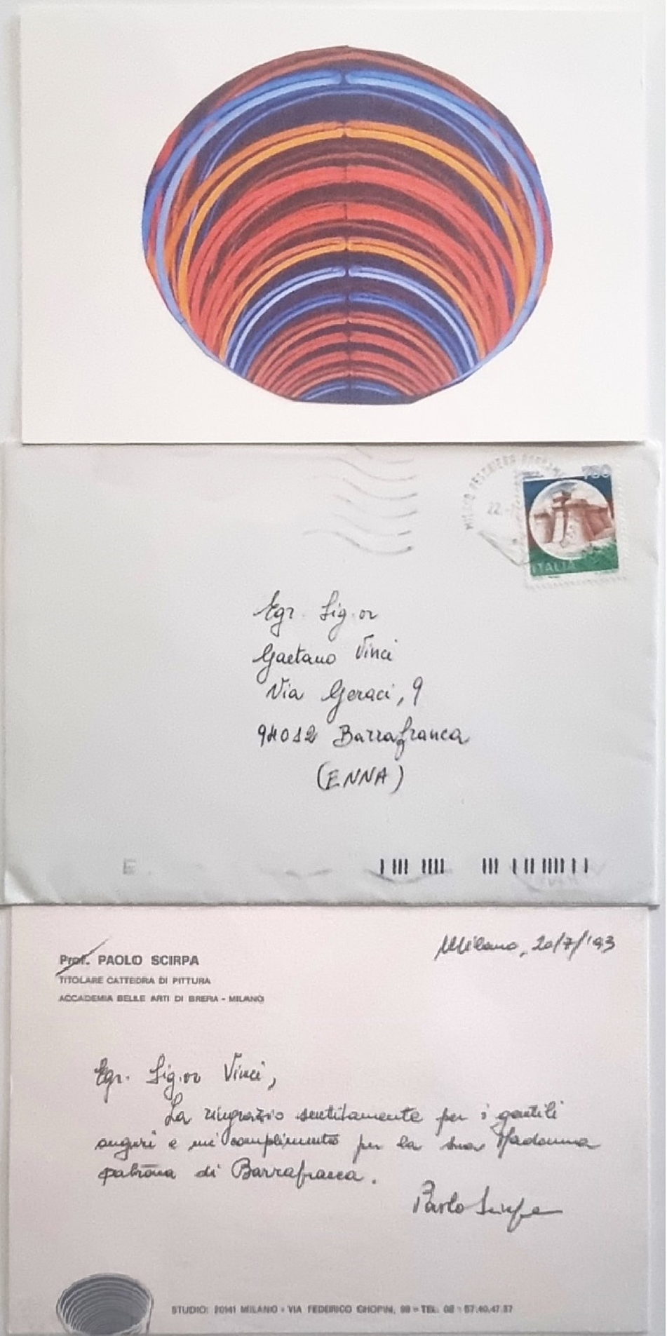 SCIRPA PAOLO Siracusa 1934 - Thiene 2025 "Senza titolo" Collage su cartoncino cm 11x13,5 del 1993. Firmato e datato. Corredato da busta per lettera originale.