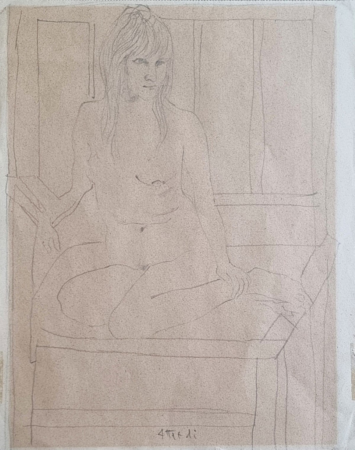 ATTARDI UGO Sori 1923 - Roma 2006 "Senza titolo" Matita su carta cm 24x30. Firmata sul fronte in basso al centro. Al verso dedica e firma per autentica del Maestro.