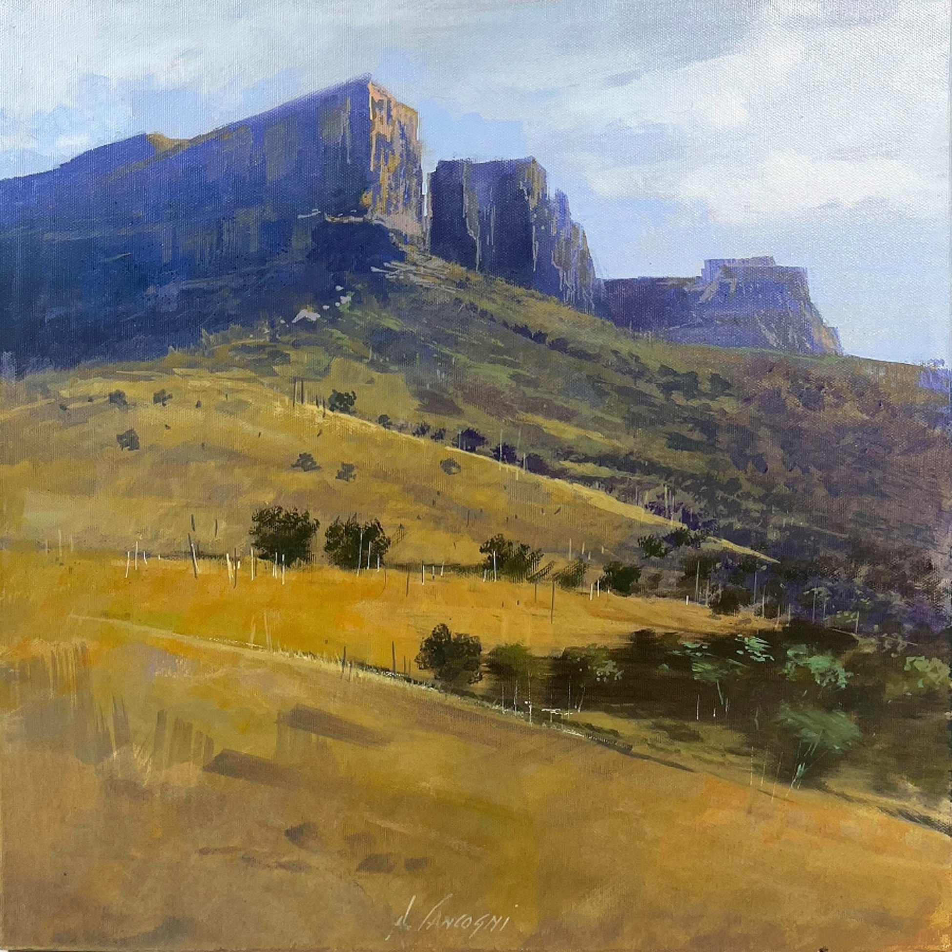 CANCOGNI AGOSTINO Forte dei Marmi 1950 "Montagna" Olio su tela cm 50x50. Firmato sul fronte in basso al centro. Al verso titolo e firma. Autentica dell'Artista su foto.