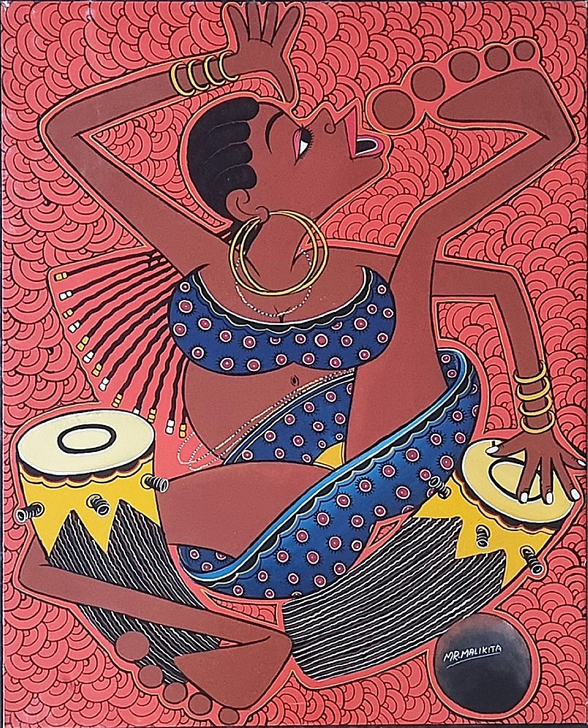MALIKITA M. MARUS Tanzania 1964 "Senza titolo" Acrilici su tela cm 80x100. Firmata sul fronte in basso a destra. Certificato di autenticità a cura di Capt. Felix Lorenz.