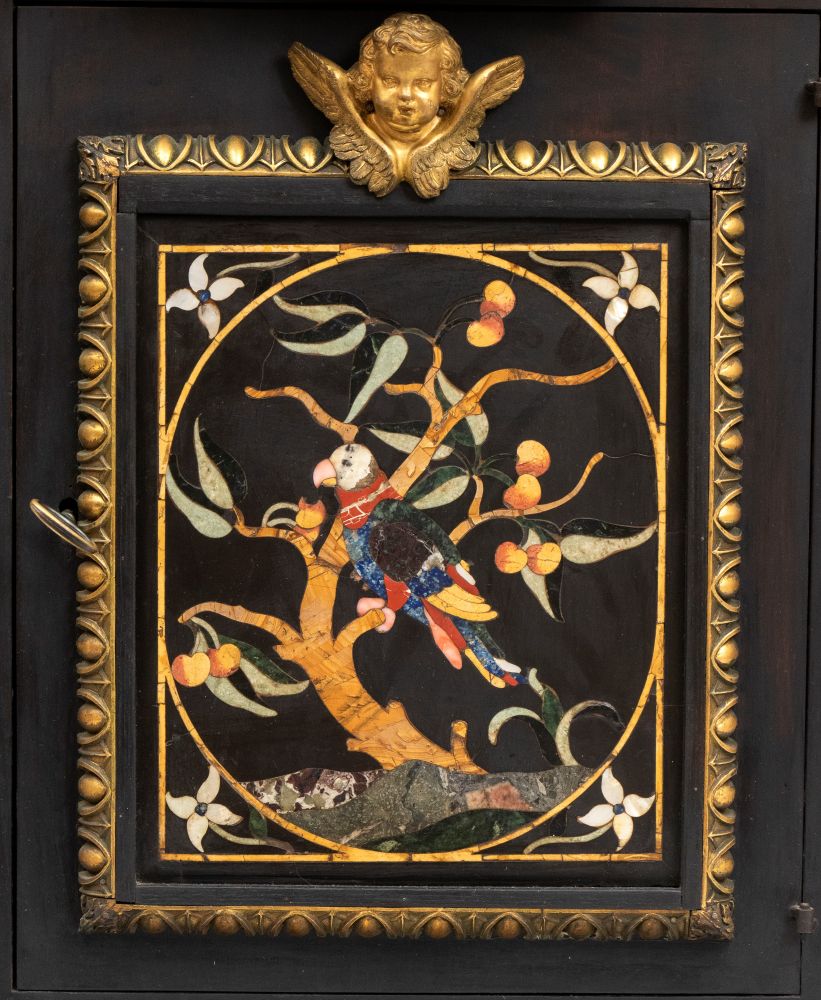 Monetiere con pietre dure Opificio Granducale per i Brancaleoni della Rocca Leonella, Italia fine XVII, inizio XVIII secolo Altezza x larghezza x profondità: 152 x 105 x 35 cm.