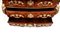 Inoltre, i tre mobili sono realizzati in impiallacciatura di bois de violette disposta a spina di pesce e sormontati da piani in marmo rosso griotte.