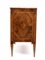 in noce a spina di pesce e intarsiato in legno di bosso, due cassetti con maniglie non originali. Montanti intarsiati e gamba tronco piramidale.