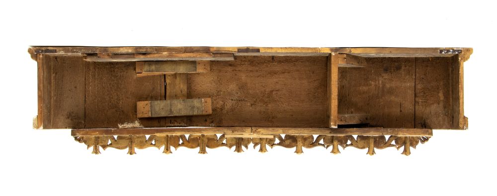 Sovrapporta in legno dorato ed intagliato Roma, XVIII secolo Altezza x larghezza x profondità: 44 x 179 x 18 cm.
