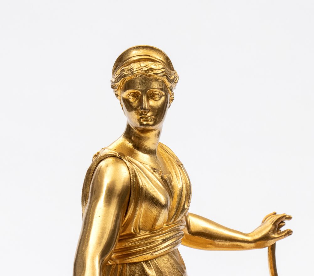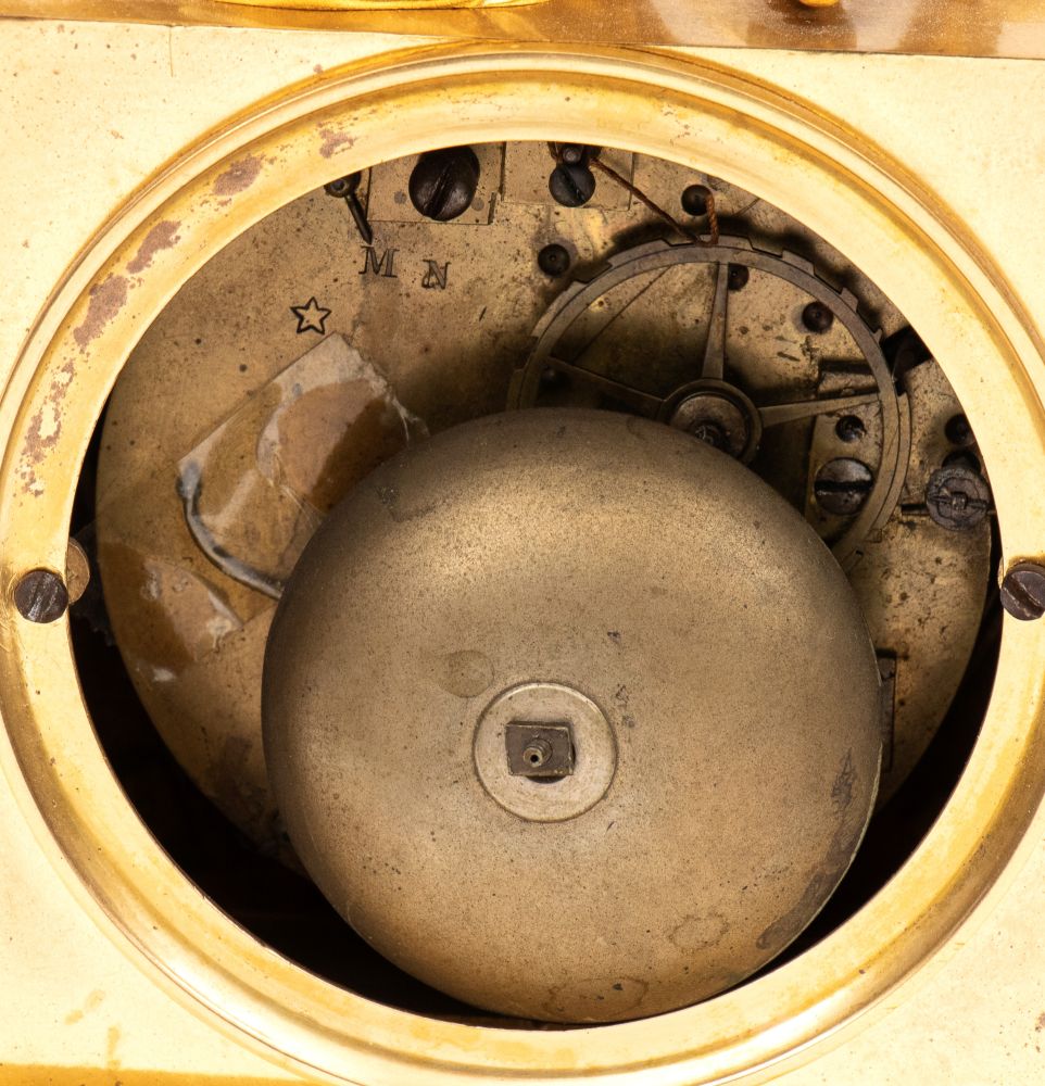 Orologio da tavolo in bronzo dorato, Impero - Francia, XIX secolo