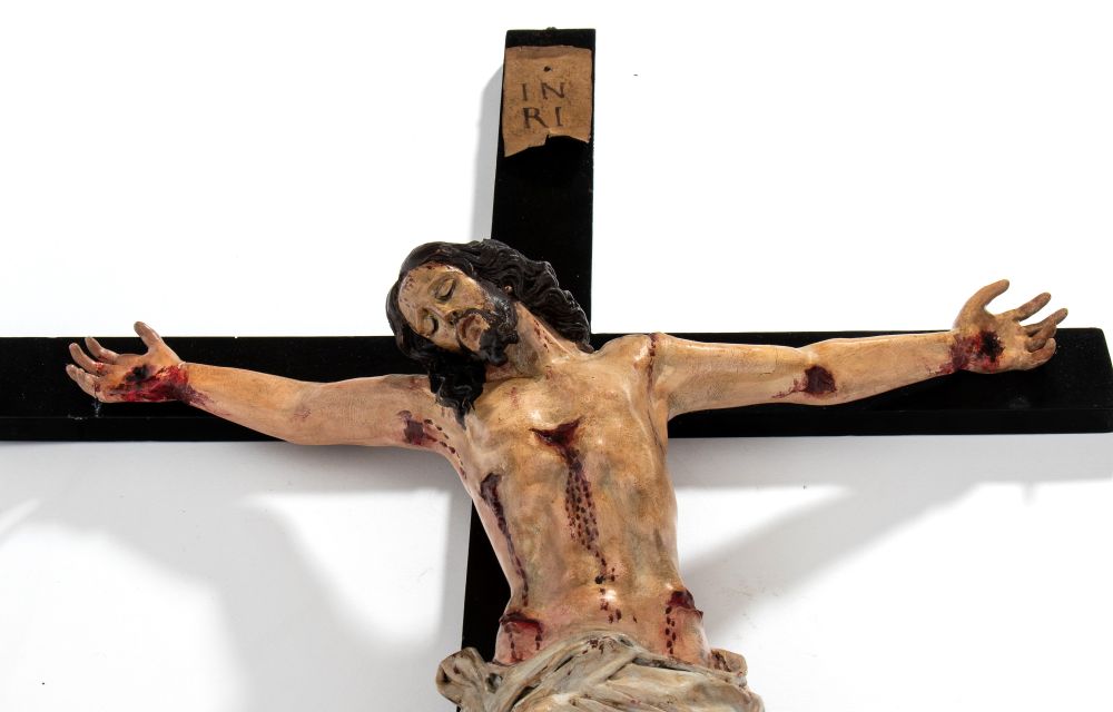 Cristo crocifisso in cartapesta Italia centrale, XVIII secolo Altezza x larghezza x profondità: 90 x 49 x 13 cm.