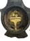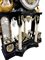 movimento a molla, suoneria viennese a 4/4 ore su bobine di suoneria, automa a quadrante mobile “Fabbro e arrotino”, interruttore di spegnimento della suoneria, funzione di ripetizione, anello del quadrante smaltato, l cassa architettonica in legno policromo, tre pannelli a specchio, colonne e piedi in alabastro, terminali intagliati dipinti in oro, lambrequins, applicazioni figurative in ottone.
