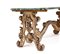 basamento composto da due laterali in legno intagliato a motivi vegetali e floreali uniti da una traversa a riccio, il tutto dorato a mecca.
