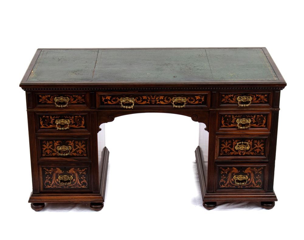 GILLOWS OF LANCASTER Scrivania inglese vittoriana intarsiata Prima metà del XIX secolo Altezza x larghezza x profondità: 76 x 137 x 63 cm.