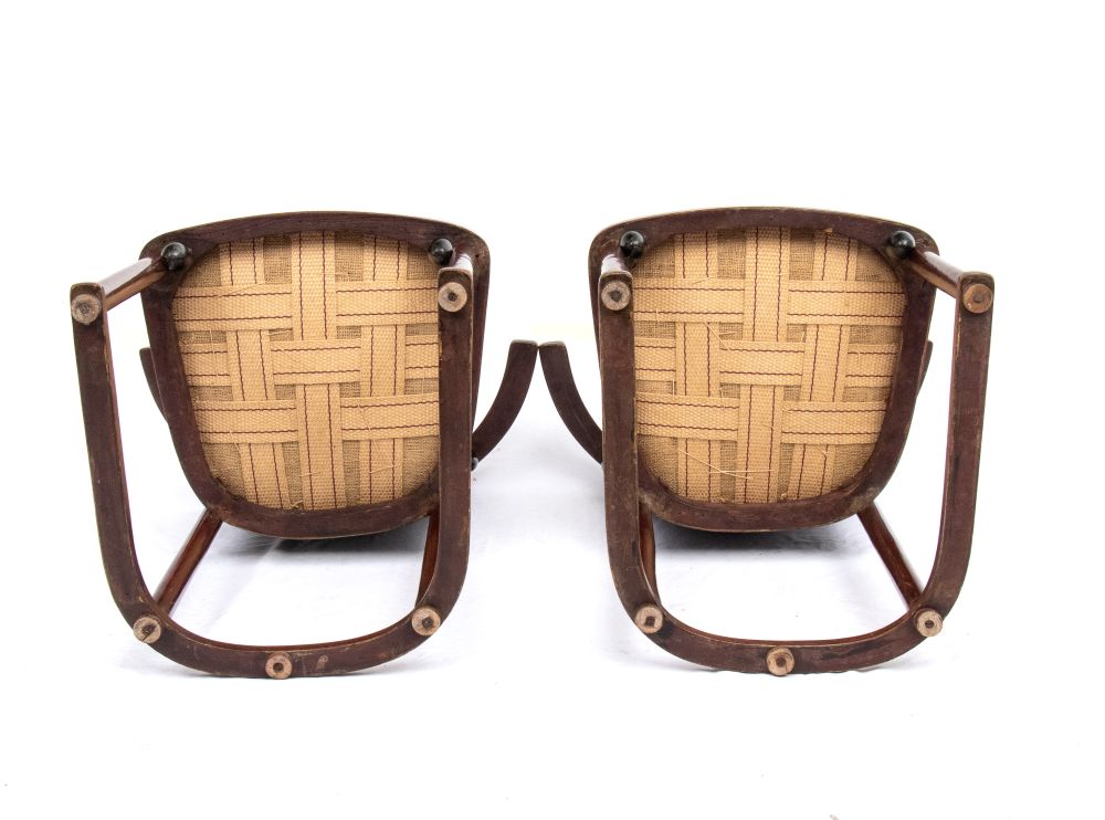 MICHAEL THONET (Boppard, 2 luglio 1796 - Vienna, 3 marzo 1871) Coppia di sedie su disegno di Josef Hoffmann Austria, XX secolo Altezza x larghezza x profondità: 75 x 56 x 42 cm. Altezza seduta: 46 cm.