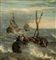 raffigurante imbarcazioni in un mare in tempesta, entro cornice in legno dorato.