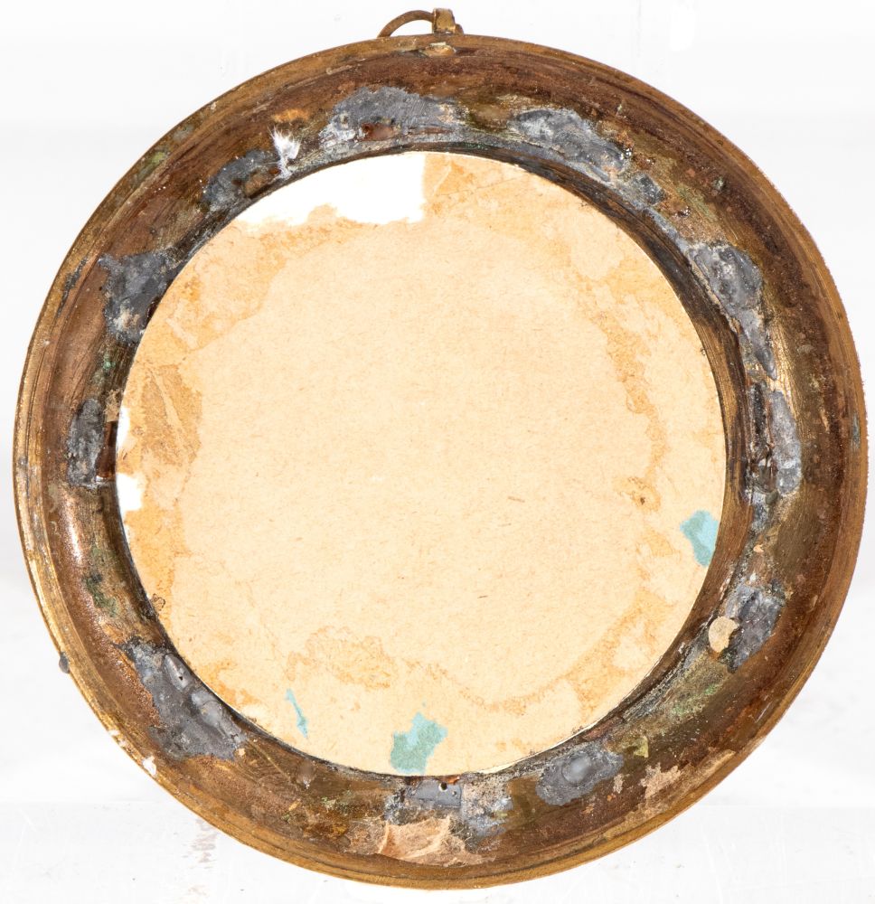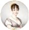 Jean Baptiste Isabey (Nancy, 1767 - Parigi, 1855) Ritratto di gentildonna con orecchini e collana di smeraldi Olio su carta Diametro: 7 cm.
