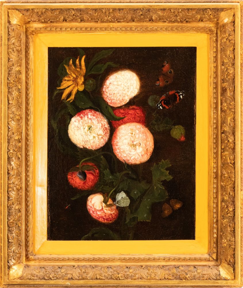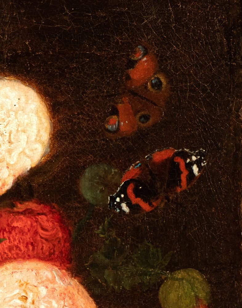 Lotto 266 | Anonimo della seconda metà del XVIII secolo Vaso con fiori XVIII secolo Olio su tela Altezza x larghezza tela: 34 x 47 cm.; con cornice: 56 x 66 cm.
