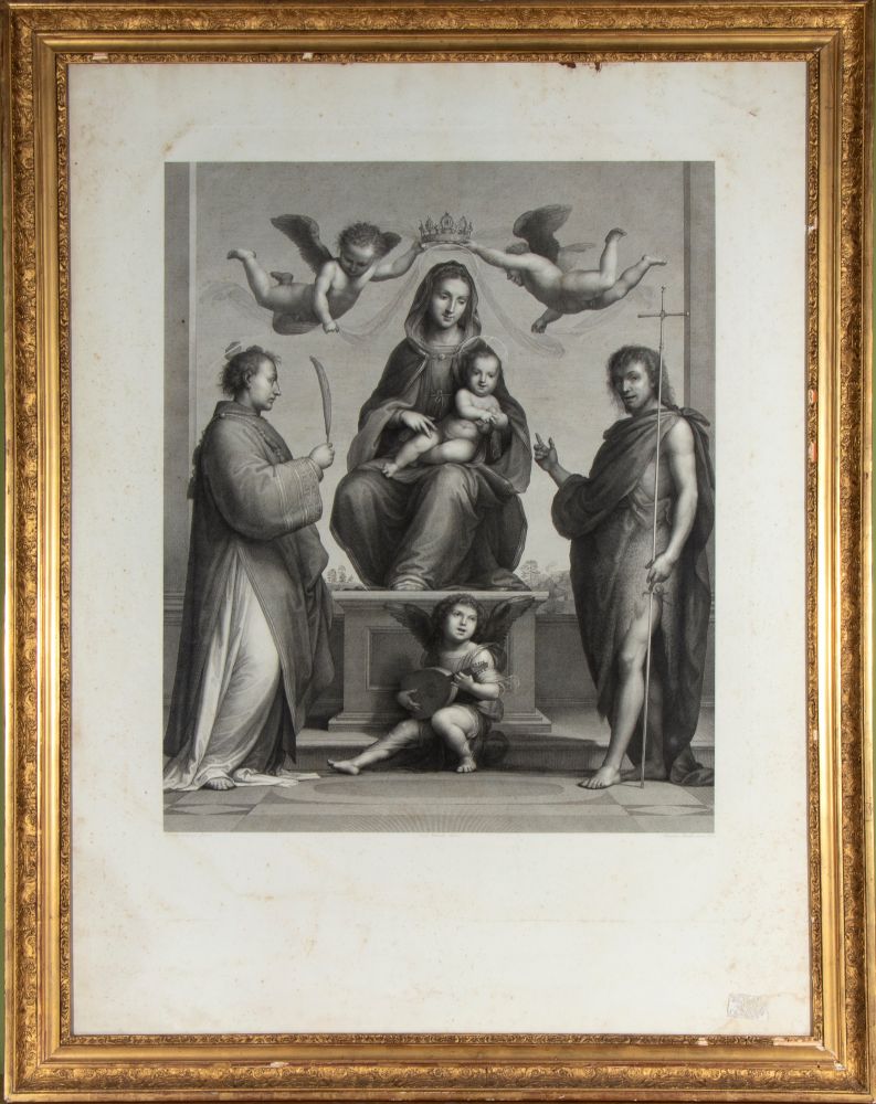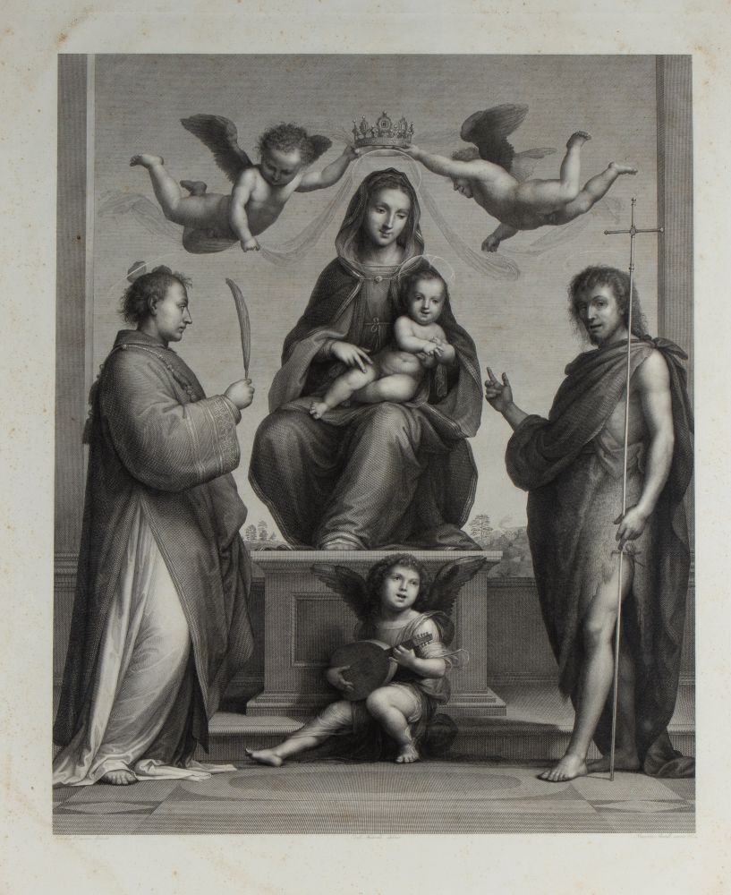 Questa incisione appartiene alla serie di traduzioni grafiche che Steinla realizzò da capolavori rinascimentali italiani, destinate a collezionisti e istituzioni artistiche del XIX secolo.