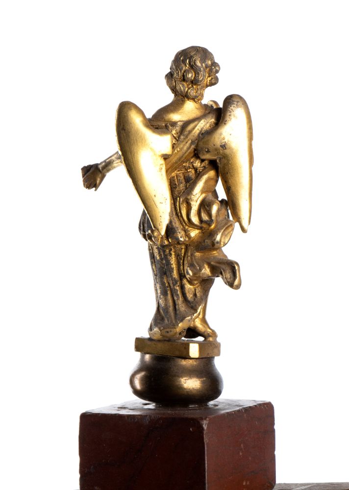 Lotto 292 | Coppia di colonne in marmo con angeli in bronzo dorato Italia, XVIII secolo Altezza x larghezza x profondità: 75 x 11,5 x 11,5 cm.