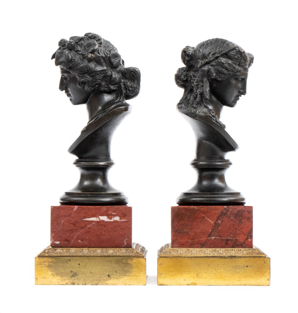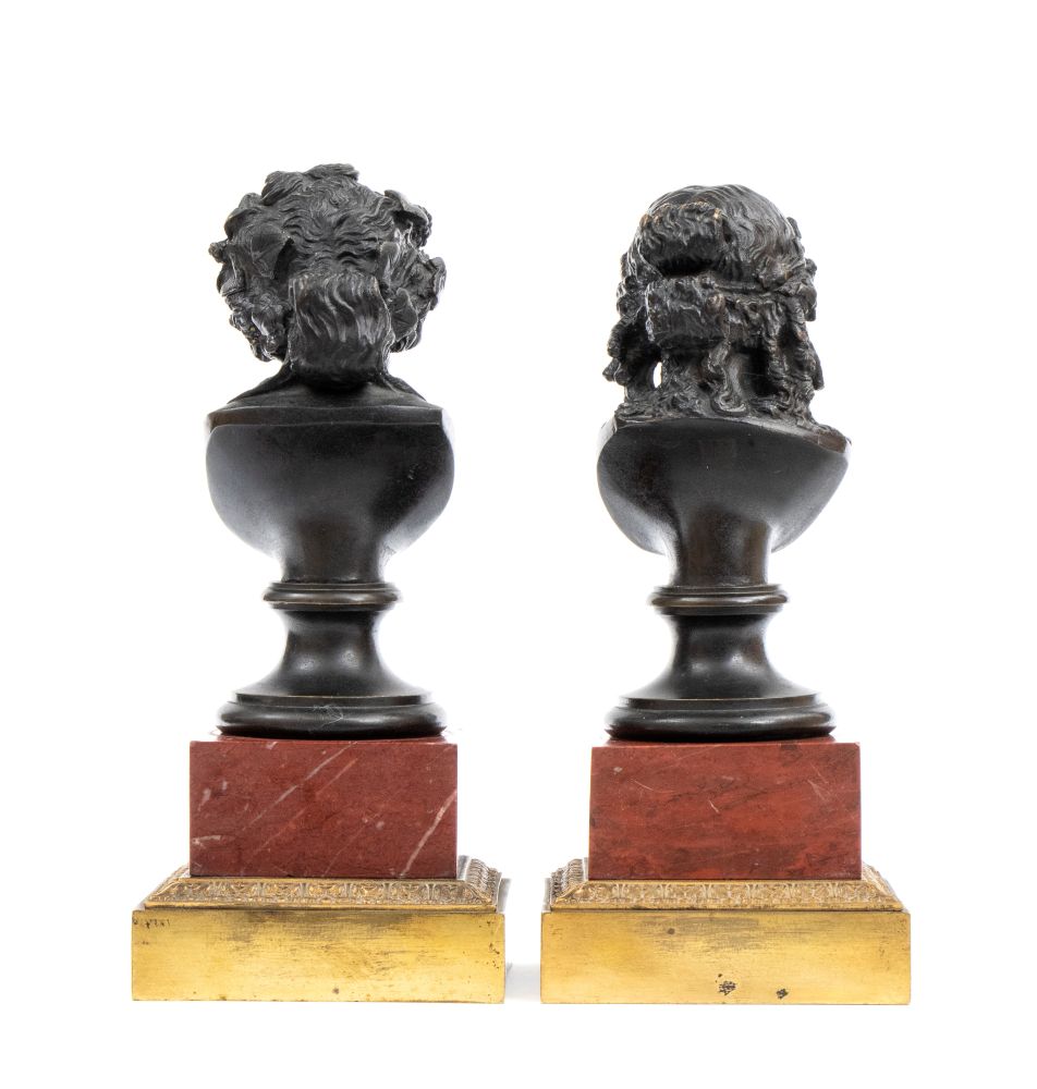 Coppia di busti in bronzo Francia, XIX secolo Altezza x larghezza x profondità: 26 x 12 x 12 cm.