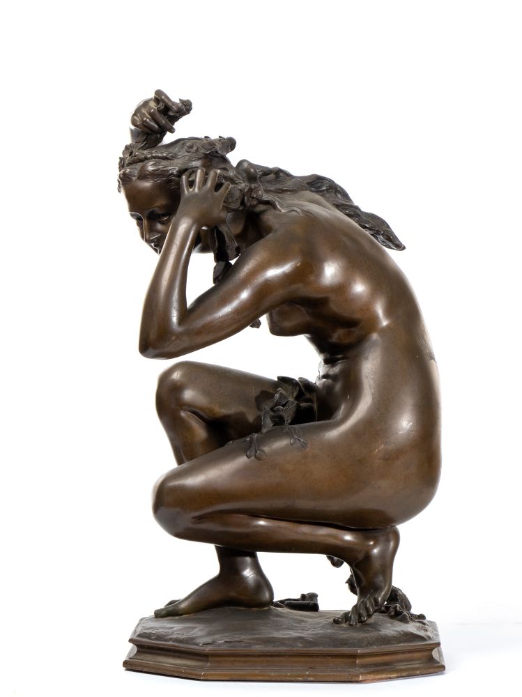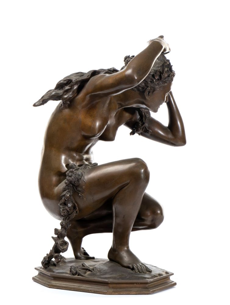 JEAN-BAPTISTE CARPEAUX (after) (1827 - 1875) Scultura in bronzo raffigurante Flora accovacciata XIX secolo Altezza x larghezza x profondità: 52 x 23 x 31 cm.