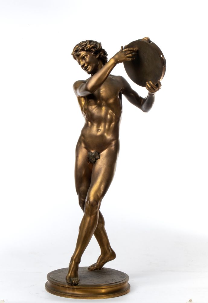 Lotto 304 | JUSTIN CHRYSOSTÔME SANSON Scultura in bronzo di giovane suonatore di tamburello Altezza x diametro: 71 x 25 cm.