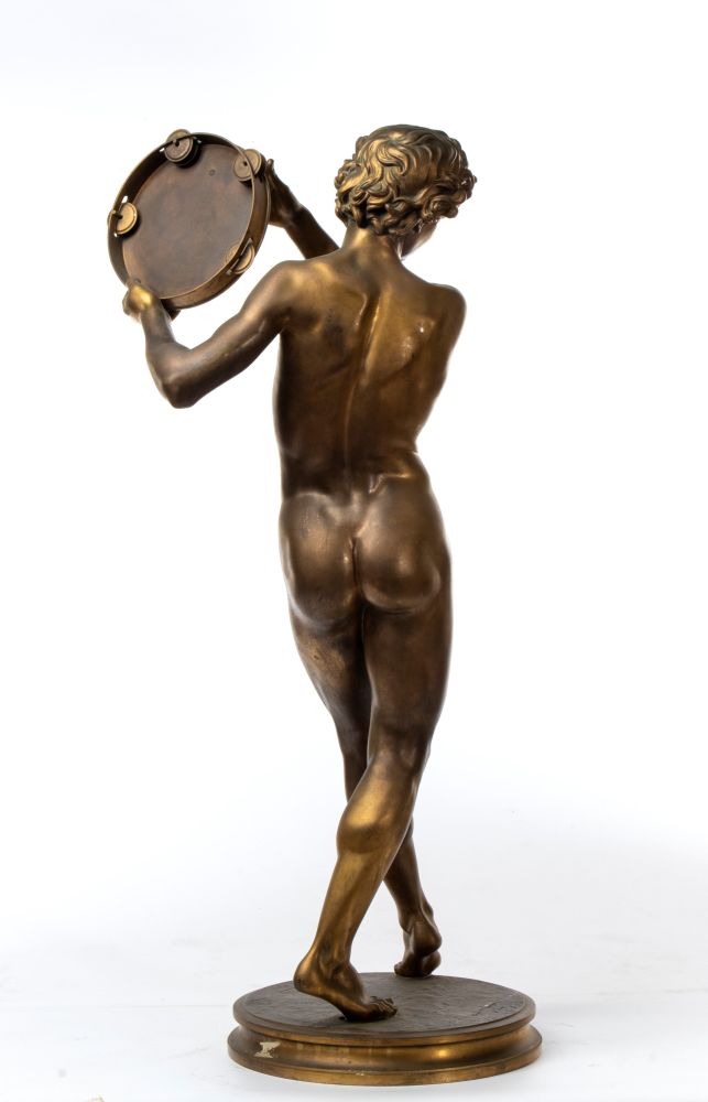 JUSTIN CHRYSOSTÔME SANSON Scultura in bronzo di giovane suonatore di tamburello Altezza x diametro: 71 x 25 cm.