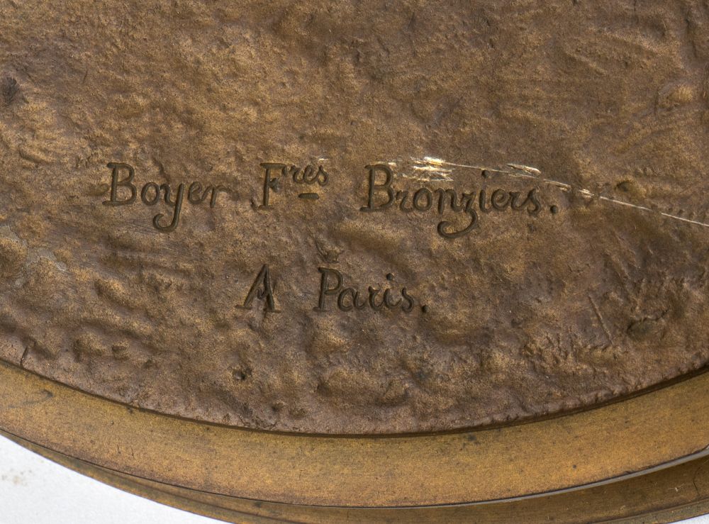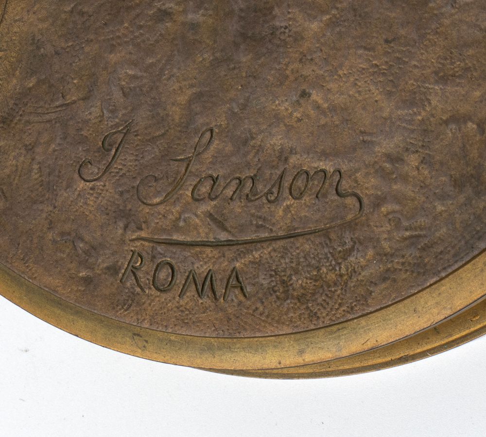 La presente scultura reca la firma incisa “J. Sanson - Roma” sulla base e il marchio della fonderia “Boyer Frères Bronziers, A Paris”.