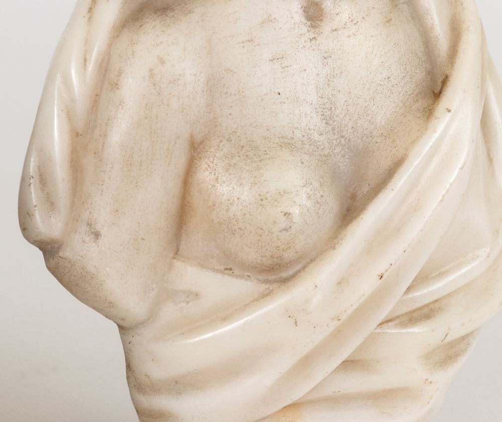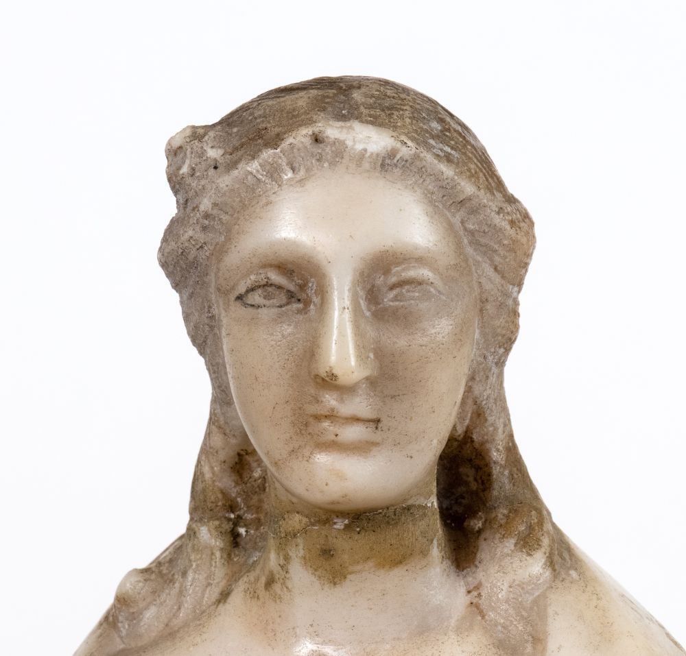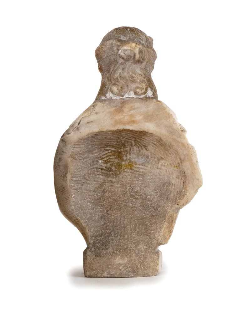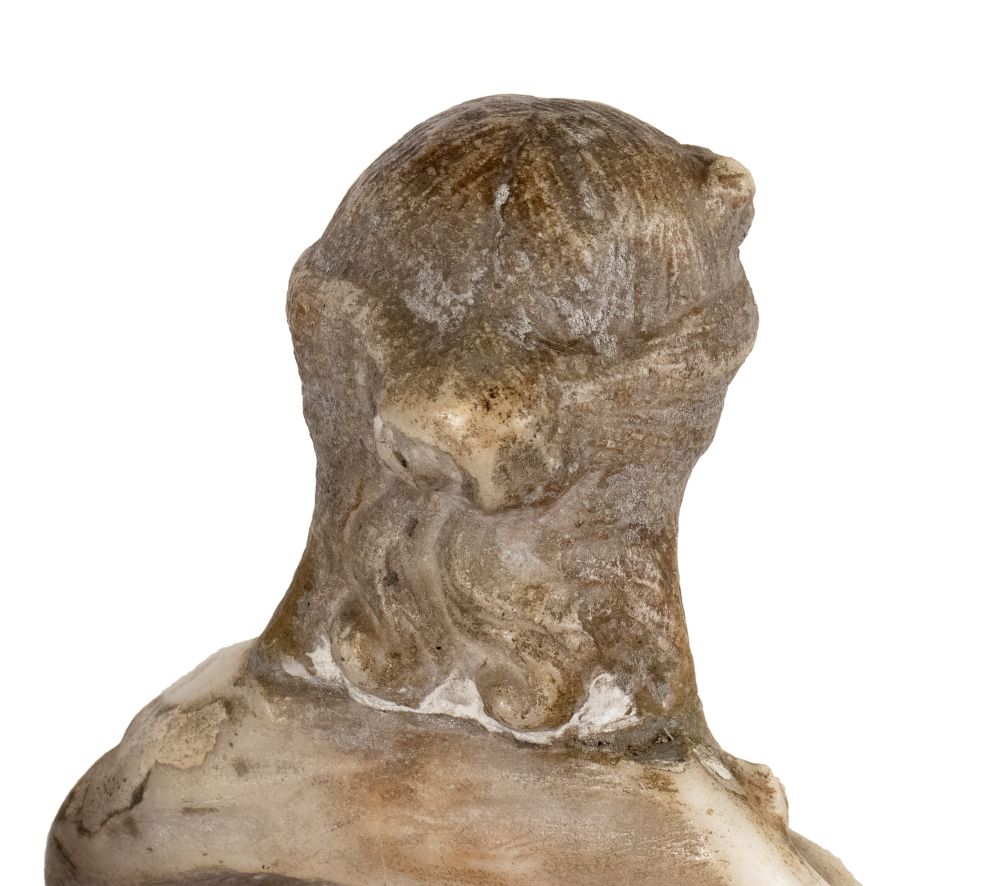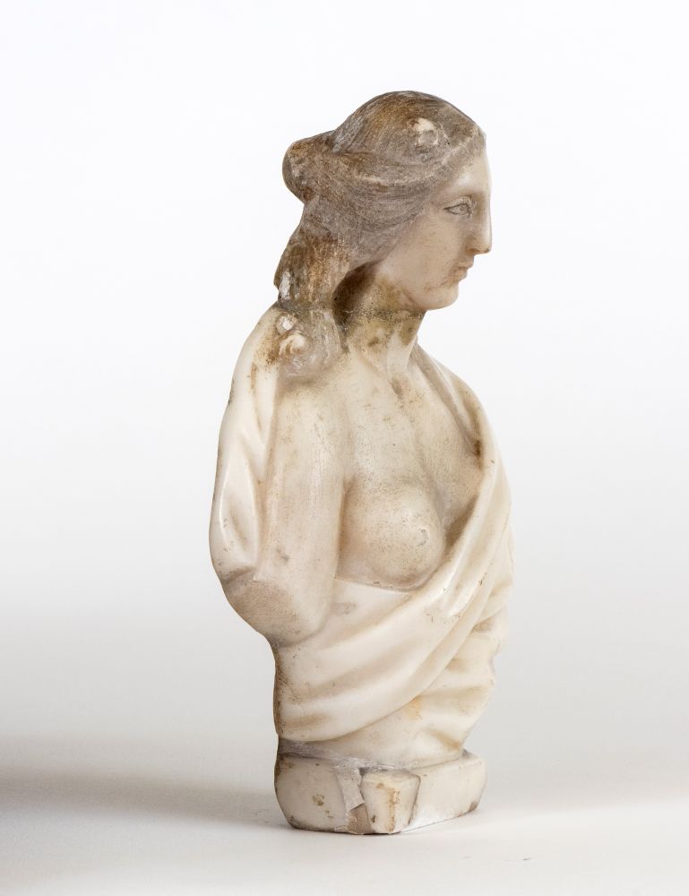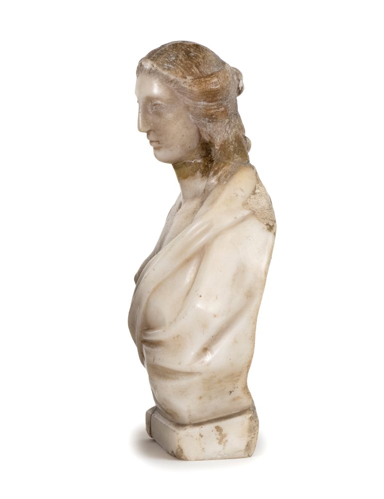 Busto femminile in marmo bianco Italia centrale, XIX secolo Altezza x larghezza x profondità: 20 x 14 x 6 cm.