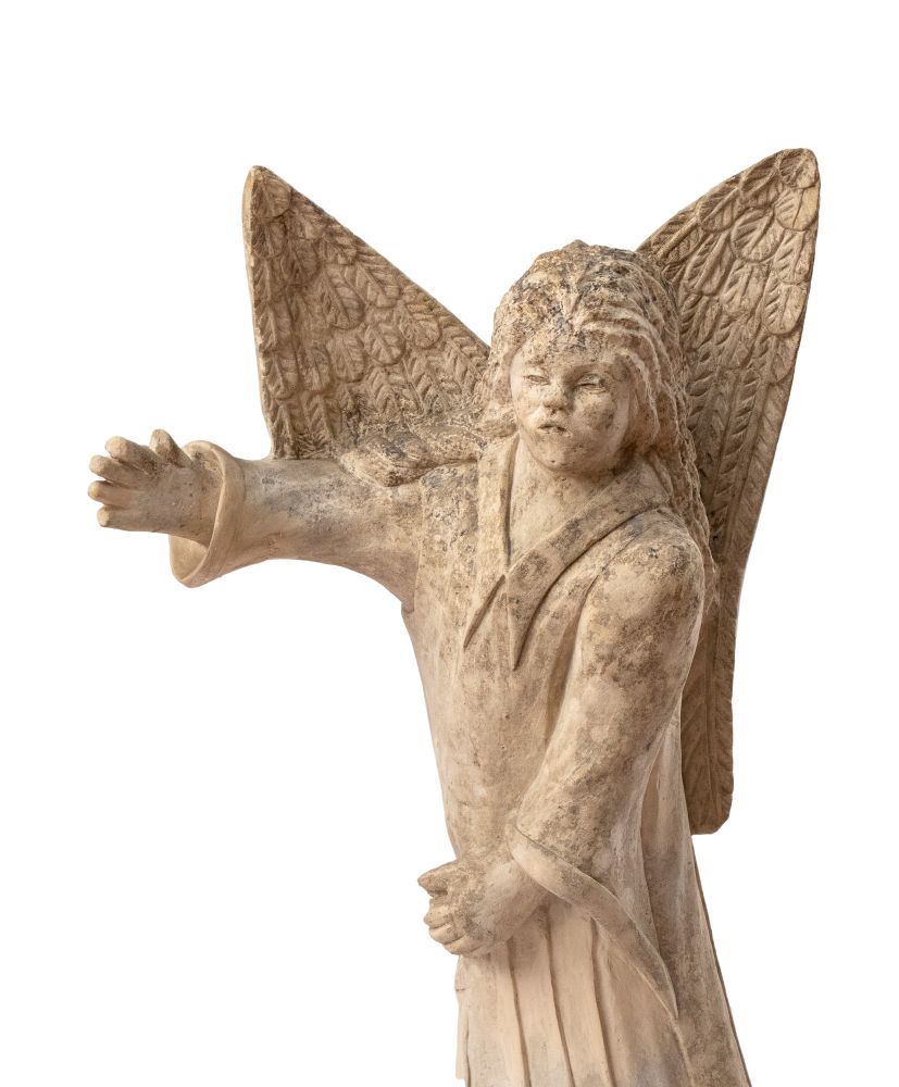 Scultura italiana in pietra raffigurante angelo con ali - XVIII secolo